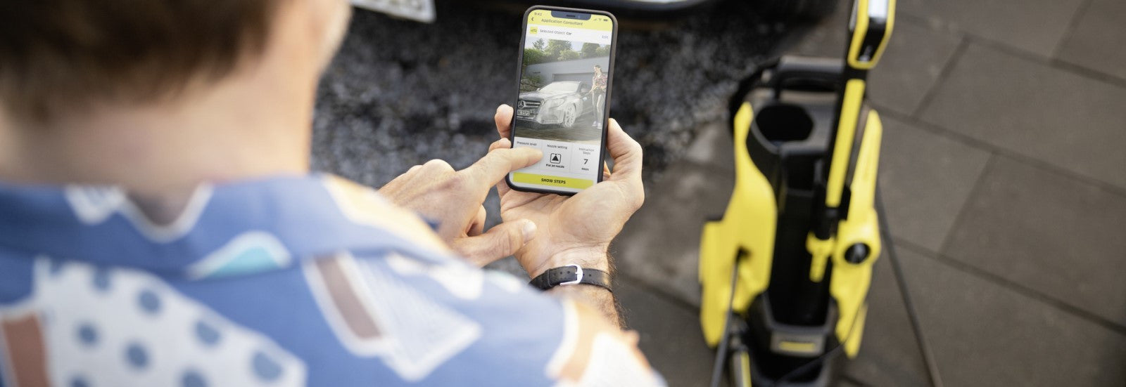 Le Bluetooth intégré permet de connecter le nettoyeur haute pression K 5 Premium Smart Control à l'application Kärcher Home & Garden. L'utilisateur peut ainsi bénéficier d'une assistance optimale via smartphone pour une multitude de situations de nettoyage et d'objets à nettoyer, permettant d'obtenir un nettoyage plus efficace. L'application offre de nombreuses fonctions utiles telles qu'un assistant d'application avec des conseils et des astuces utiles, une notice de montage, des consignes de maintenance et d'entretien ainsi que le portail de service Kärcher. En outre, l'appareil dispose d'un mode Boost pour plus de puissance, du pistolet G 180 Q Smart Control avec afficheur LCD et de la lance d'arrosage Multi Jet 3 en 1. Les réglages de la pression sont soit effectués directement sur le pistolet soit transmis au pistolet depuis l'application. L'afficheur LCD permet de vérifier quel niveau de pression est réglé, si le mode Boost peut être déclenché ou si l'appareil se trouve encore en mode veille. Avec Home Kit comprenant le nettoyeur de surfaces T 5 et 1 litre de détergent pour pierres 3 en 1. Parmi les autres équipements, on trouve l'enrouleur de flexible, le système de détergent Plug ’n’ Clean, la poignée télescopique en aluminium et la position de stationnement pour que les accessoires soient à portée de main à tout moment.