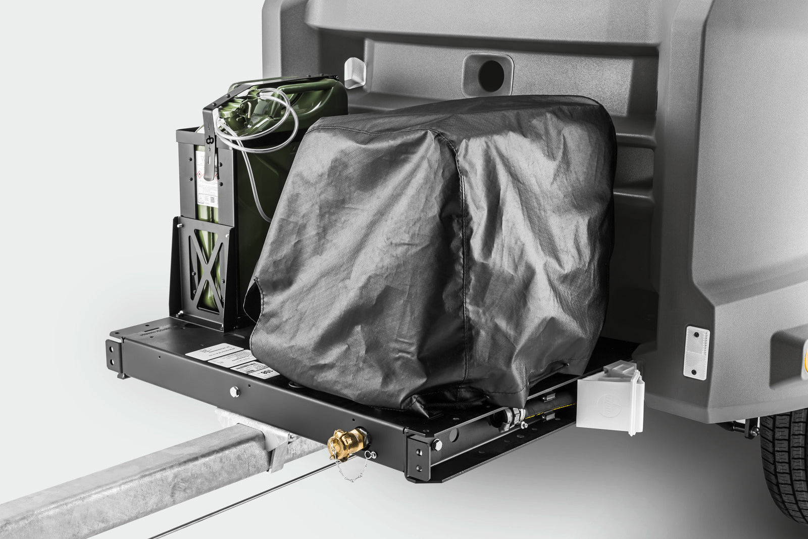Die nachrüstbare Abdeckhaube für die Motor-Pumpen-Einheit von Kärcher HD-Trailern schützt während des Transports zum Einsatzort effektiv den Diesel- oder Benzinmotor sowie die Hochdruckpumpe des Hochdruckreinigers vor Verschmutzung.