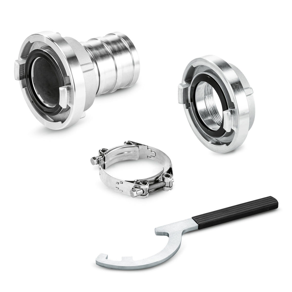 Das Premium-Zubehörpaket ergänzt die bereits serienmäßig mit unserer Schmutzwasserpumpe WWP 45 gelieferten Zubehöre und erlaubt einen besonders einfachen, schnellen und professionellen Anschluss von Ansaug- und Ablaufschläuchen. Das Paket besteht zum pumpen- sowie schlauchseitigen Anschluss aus jeweils 2 benutzerfreundlichen Storz-B-Schlauchkupplungen, 3 robusten Gelenkbolzenschellen und einem Kupplungsschlüssel. Die Storz-B-Schlauchkupplungen zum schlauchseitigen Anschluss beinhalten zur bestmöglichen Montage auch Schlauchtüllen.