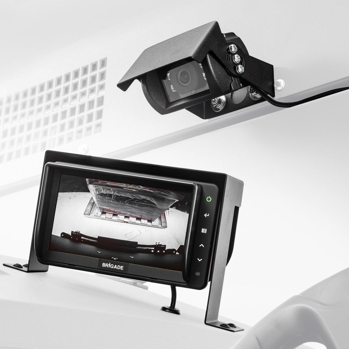 Rückfahrkamera mit 7"-Display für unsere Aufsitz-Scheuersaugmaschine B 300 RI. Verbessert die Sicht bei Rückwärtsfahrten und hilft so, Beschädigungen an Maschine und Umfeld zu vermeiden.