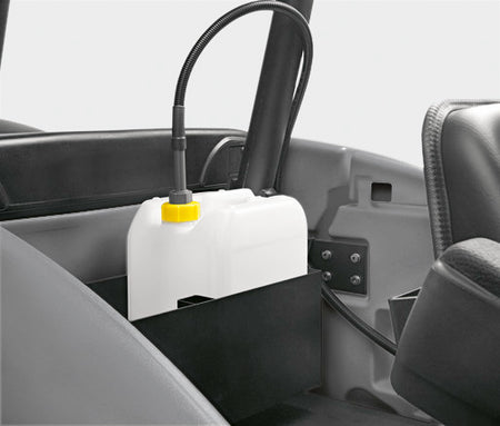 Geeignet für zwei 10-liter Kanister. Mit Anzeige im Gerätedisplay: Reinigungsmittel leer. Einstellbar zwischen 0,5 und 3%. Inhalt: - Wanne für zwei 10-Liter Kanister - Ansaugstutzen mit Sensor, falls Kanister leer - Schlauch- und Kabelverbindungen zum Gerät - Schalter für das Bedienpanel - Montageteile Nicht in Verbindung mit Abausatz Recycling 2.640-884.0.