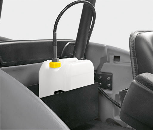 Anbausatz für Kärcher Scheuersaugmaschinen zur Reinigungsmitteldosierung zwischen 0,5 und 3 % direkt aus bis zu 2 10-l-Kanistern. Mit Füllstandsanzeige im Gerätedisplay.