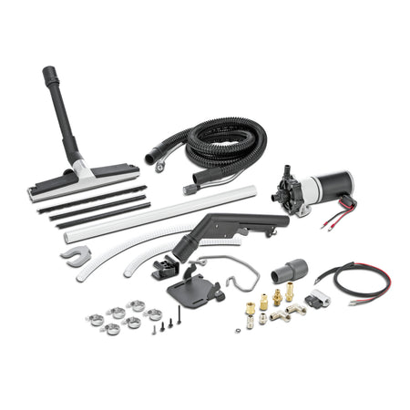 Der Anbausatz "Sprühsaugen" erleichtert die Reinigung an für die Maschine unzugänglichen Stellen wie Kanten und Sockeln.