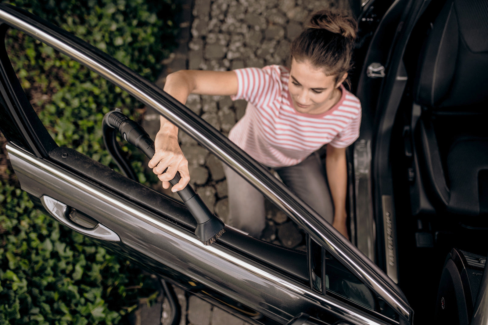 Mit dem umfangreichen Zubehörset bestehend aus 1,5 Meter Verlängerungsschlauch, extra langer Fugendüse, Autodüse, Saugpinsel mit harten Borsten, Saugpinsel mit weichen Borsten und Mikrofasertuch für glatte Oberflächen und Fensterflächen wird die Autoinnenreinigung zum Kinderspiel – und das Auto zur restlos sauberen Wohlfühlzone. Ob Fußraum, Fußmatte, Autositze, Armaturenbrett, Mittelkonsole, Fenster oder Kofferraum: Mit diesem Zubehörset ist der gesamte Autoinnenraum im Handumdrehen blitzsauber. Selbst schwer erreichbare Stellen wie Zwischenräume sowie empfindliche Oberflächen können perfekt gereinigt werden. Das Zubehörset ist für alle Kärcher Home & Garden-Nass-/Trockensauger geeignet.