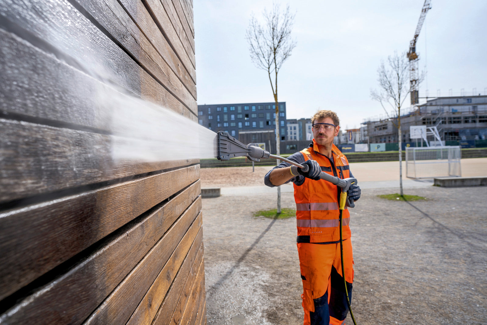 - 50 % höhere Wassereffizienz*Wassersparend.* Basierend auf 50 % mehr Fläche, die mit der gleichen Energie- und Wassermenge im Vergleich zum Kärcher Standard-Flachstrahl gereinigt werden kann.