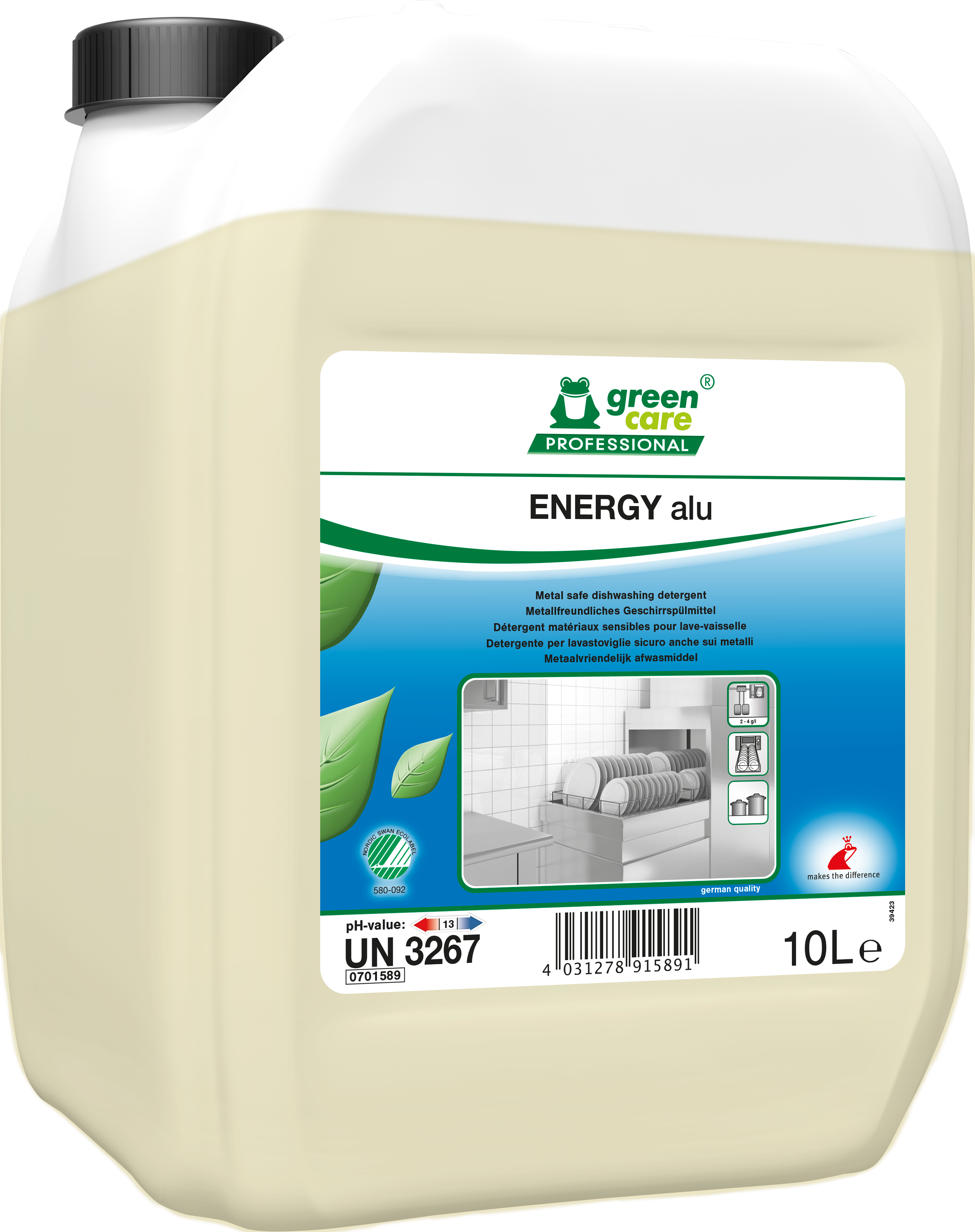 - ENERGY alu ist ein konzentriertes flüssiges Geschirrspülmittel für das professionelle Spülen sowie für das Vorweichen. Hervorragende Waschwirkung in weichem bis mittelhartem Wasser.