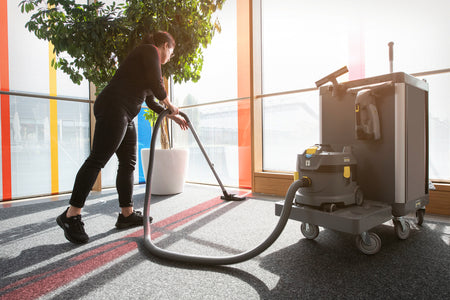 Der kompakte, geschlossene Reinigungswagen FM ExpertPro 50/ W Tp ist besonders für enge Lagerräume geeignet. Er bietet ausreichend Platz für die Eimermethode mit universeller Auswringpresse (jeweils 1 Eimer für sauberes und schmutziges Wasser). Bei Nichtgebrauch kann die Erweiterungsschale platzsparend hochgeklappt werden. Zwei Eimer mit einem Volumen von jeweils 6 Litern bieten separaten Platz für verschiedene Reinigungsutensilien. Zwei einzeln befestigte und herausnehmbare Schubladen mit einem Fassungsvermögen von 16 Litern bieten eine praktische Möglichkeit, zusätzliche Ausrüstung mitzunehmen. Flachbesen, Zangen oder Ähnliches können mit den mitgelieferten FlexoLink-Verbindungen einfach und variabel an den Außenseiten des FlexoMate befestigt werden. FlexoLink XL dient zur wahlweisen Befestigung eines Warnschildes oder des WVP 10 Adv. Der Wagen wird an 2 der 4 Räder gebremst. Dies ermöglicht immer ein stabiles und sicheres Parken, auch auf abschüssigen Böden. Dank des ergonomischen, höhenverstellbaren FlexoGrip-Griffs werden die Arme und Schultern des Benutzers beim Schieben des Wagens weniger belastet. Darüber hinaus können die Push-to-open-Türen individuell für Rechts- und Linkshänder konfiguriert werden.