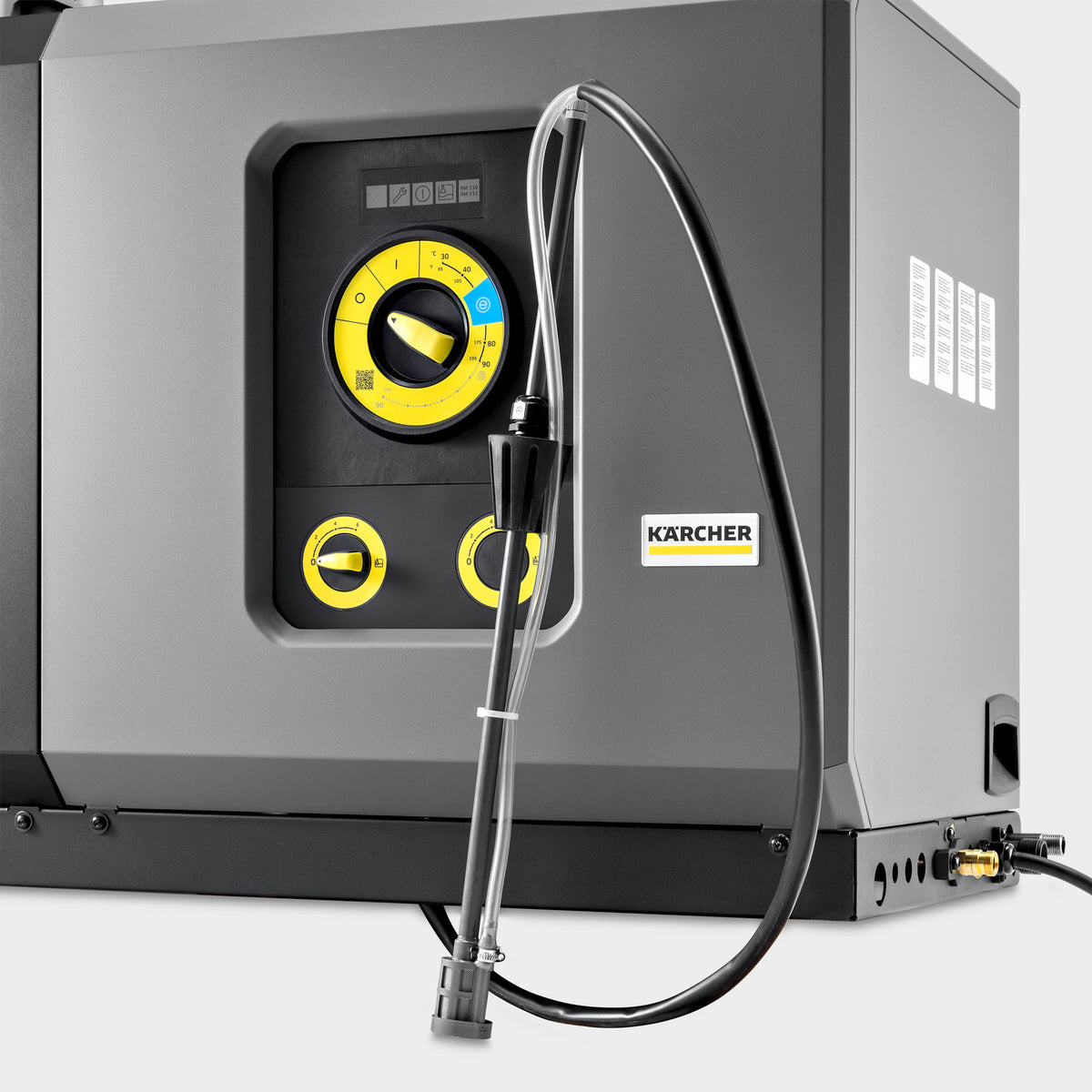 - Hohe FlexibilitätOptional können Fernbedienungen direkt an der Entnahmestelle eingesetzt werden.Stundenzähler und Manometer sowie eine automatische Druckentlastung zum Schutz der Zubehöre und Rohrleitungen sind optional erhältlich.Für jedes Einsatzziel und jede Reinigungsaufgabe bietet Kärcher das passende Zubehör aus dem umfassenden Sortiment für Hochdruckreiniger.