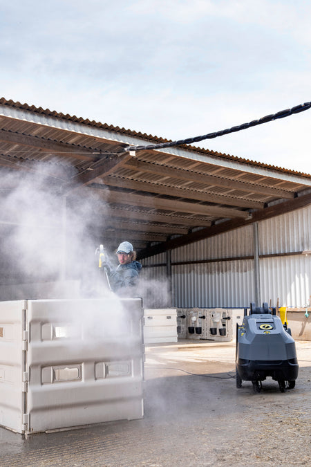 Serienmäßig mit hochwertigen Komponenten, wie dem wassergekühlten, langsam laufenden, 4-poligen Elektromotor, sowie einer robusten 3-Kolben-Axialpumpe mit Keramikkolben ausgestattet punktet der Heißwasser-Hochdruckreiniger HDS 12/18-4 S von Kärcher mit hoher Zuverlässigkeit. Dazu begeistert das Gerät aus der Superklasse, dank intuitiver Ein-Knopf-Bedienung, einer ergonomischen Zubehöraufbewahrung und der kraftsparenden EASY!Force Advanced-HD-Pistole mit 1050 Millimeter langem Strahlrohr und Servo Control, Anwender mit einem mühelosem Handling. Zwei Reinigungsmitteltanks mit präzisen Dosiermöglichkeiten, die sparsame eco!efficiency-Stufe sowie die optimierte Brennertechnik ermöglichen dazu sehr wirtschaftliche Reinigungseinsätze. Bewährte Sicherheitstechnik mit Wasserfilter, Sicherheitsventil, SDS-Schlauch und durchdachten Entkalkungsmöglichkeiten schützt Komponenten zudem wirkungsvoll und gewährleistet eine hohe Verfügbarkeit und Langlebigkeit des Geräts.