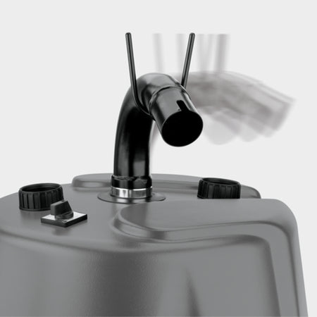- Hohe Robustheit, Flexibilität und ModularitätGerät und Fahrgestell sehr robust und mit hohen Wandstärken ausgestattet.Drehbarer Schlauchanschluss mit bis zu 360° drehbarem Rohrbogen.Optional mit Überfüllsicherung, Siebkorb oder Zubehörhalter erhältlich.