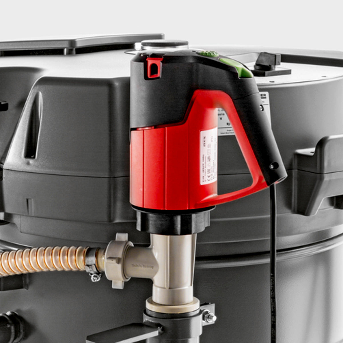 - FasspumpenfunktionEine autonome Fasspumpe ermöglicht die einfache Rückführung des Saugguts auch auf ein hohes Entleerungsniveau.Transparenter Schlauch zur Kontrolle der aufgenommenen Flüssigkeitsmenge.