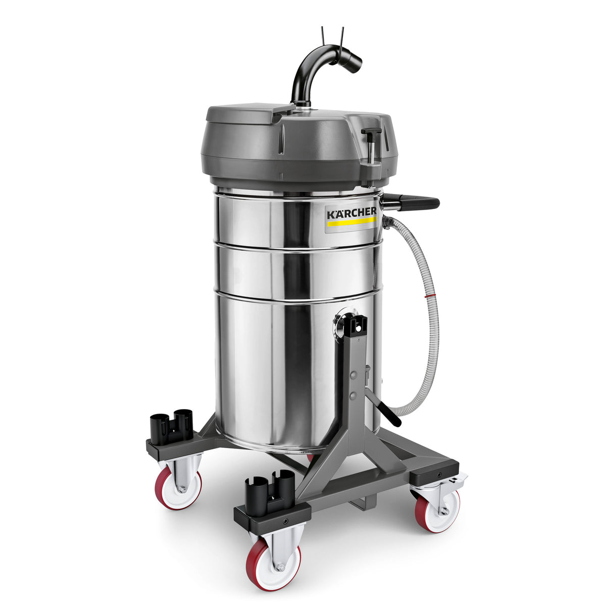 - Hohe Robustheit, Flexibilität und ModularitätGerät und Fahrgestell sehr robust und mit hohen Wandstärken ausgestattet.Drehbarer Schlauchanschluss mit bis zu 360° drehbarem Rohrbogen.Optional mit Überfüllsicherung, Siebkorb oder Zubehörhalter erhältlich.