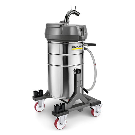 Der Ölsauger IVR-L 120/24-2 Tc Me Dp ist ein kompakter Industriesauger mit Kippfahrgestell und 120-Liter-Edelstahlbehälter. Das Gerät saugt sowohl große Flüssigkeitsmengen als auch weitestgehend staubfreie Feststoffe (z.B. Späne). Dank optionalem Spänekorb können diese Feststoffe problemlos von den aufgesaugten Flüssigkeiten getrennt werden. Aufgrund der Edelstahlausführung ist der IVR-L 120/24-2 Tc Me Dp vielseitig einsetzbar. Auch korrosive Medien können problemlos aufgesaugt werden. Der 360° drehbare Schlauchanschluss am Saugkopf sorgt dafür, dass der Saugschlauch nicht verknotet und steigert somit die Flexibilität. Der aktuelle Füllstand ist jederzeit über den Entleerschlauch ersichtlich. Eine autonome Fasspumpe ermöglicht die Rückführung der aufgesaugten Flüssigkeiten auf ein hohes Entleerungsniveau. Die robuste Bauart inklusive ölfesten Rollen und Netzkabel garantiert eine hohe Lebensdauer selbst im harten industriellen Einsatz. Ferner ermöglicht sie eine Stapleraufnahme.