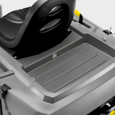 Kompakt, hervorragend ausgestattet, kinderleicht zu bedienen und dazu sehr preiswert: Unsere Aufsitz-Kehrsaugmaschine KM 85/50 R Bp Pack überzeugt in allen Belangen. Die geringe Baugröße dieses Einstiegsmodells prädestiniert die Maschine auch zu Arbeitseinsätzen in engen und zugestellten Bereichen, während sie im Innen- und Außenbereich mit einer hohen Flächenleistung punktet und ihre Stärken souverän ausspielen kann. Zwei ausweichende Seitenbesen mit Drehzahlregulierung – jeweils rechts und links am Gerät –, ein großer Staubfilter für staubfreies Arbeiten, eine von außen sichtbare Verschleißanzeige der Hauptkehrwalze sowie Batterie und Ladegerät sind serienmäßig mit an Bord. Die pendelnd gelagerte Walze muss zu keinem Zeitpunkt nachjustiert werden und entfernt dennoch Schmutz auch bei Bodenunebenheiten rückstandslos. Wartungsarbeiten sind mühelos durchführbar. So ist der Staubfilter komfortabel vom Sitz aus zu reinigen und die Hauptkehrwalze werkzeuglos zu wechseln. Die weit öffnende Gerätehaube ermöglicht einen bequemen Zugang zu inneren Komponenten. Dank des integrierten Home-Base-Systems ist auch die Mitnahme zusätzlicher Reinigungsutensilien bequem möglich.