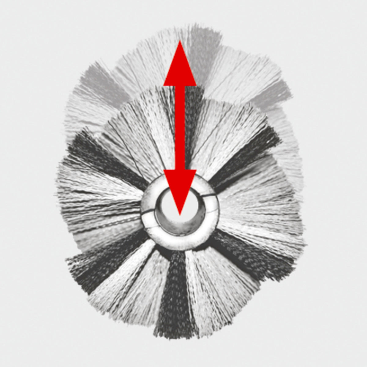 - Pendelnd gelagerte HauptkehrwalzeHervorragende Schmutzaufnahme auch bei Bodenunebenheiten.Keine Verschleißnachstellung nötig.Effiziente und schnelle Reinigung.