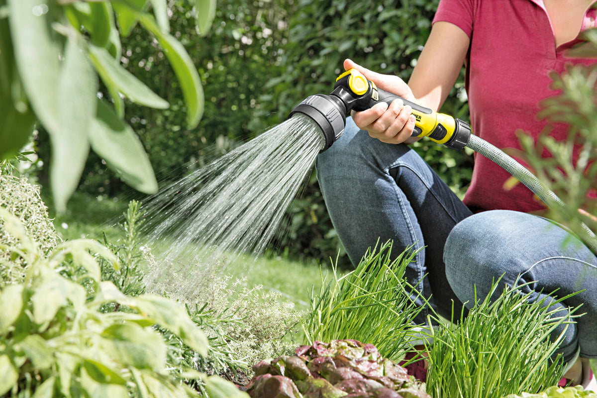 Ein Set für viele Bewässerungsaufgaben. Das Multifunktions-Spritzpistolenset passt sich den unterschiedlichen Bedürfnissen der verschiedenen Pflanzen an. Das Multifunktions-Spritzpistolen-Modell Plus (Nr. 2.645-269.0) bewässert tropfsicher und verfügt über 4 Sprühbilder: Brause, Punkt- und Flachstrahl sowie feiner Sprühnebel. Damit meistert die Multifunktions-Spritzpistole nicht nur Bewässerungs-, sondern auch leichte Reinigungsaufgaben. Der drehbare Griff mit arretierbarem Auslöser kann nach vorne oder hinten gerichtet werden und ermöglicht somit einen für Kärcher typischen individuellen Bedienkomfort. Darüber hinaus enthält das Set 2 hochwertige Universalkupplungen Plus mit Grip – eine inklusive Aqua Stop – sowie ein G3/4"-Hahnanschlussstück mit G1/2"-Reduzierstück. Dank praktischem Aqua Stop kommt es auch dann nicht zum Wasserdurchfluss, wenn die Spritze abgenommen wird und dabei der Wasserhahn geöffnet ist. Die Kupplungen sind außerdem für alle gängigen Gartenschlauchdurchmesser verwendbar. Übrigens: Spritzen und Kupplungen von Kärcher sind mit allen erhältlichen Klicksystemen kompatibel und lassen sich so problemlos an Ihren Gartenschlauch anschließen.