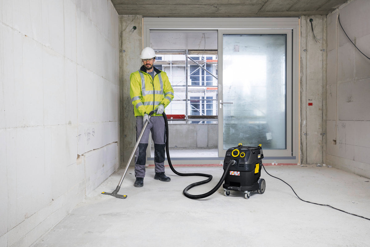 Kärcher wird 90: Der Nass- und Trockensauger NT 30/1 Tact Te L Anniversary Edition in Schwarz ist ideal für den harten Einsatz auf der Baustelle und in der Werkstatt. Dabei erfüllt er mit Leichtigkeit die hohen Anforderungen, die professionelle Handwerker an ihre Geräte stellen. Der kompakte Staubsauger verfügt über einen robusten 30-Liter-Behälter mit stabilen Lenkrollen aus Metall und einem Stoßfänger. Dank des automatischen Filterabreinigungssystems Tact saugt er auch unter schwierigen Bedingungen ununterbrochen große Mengen an Feinstaub auf. Darüber hinaus trägt der feuchtigkeitsresistente PES-Flachfaltenfilter zu einer staubfreien Arbeitsumgebung bei. Das Gerät zeichnet sich durch seine einfache Bedienung aus: Die einfache Auswahl des Saugprogramms erfolgt über einen Drehknopf und die stufenlose Drehzahlregelung. Der Staubsauger ist mit einem kompletten Antistatik-System mit leitfähigem Zubehör ausgestattet: elektrisch leitfähiger Saugschlauch sowie Krümmer und Saugrohr aus rostfreiem Stahl. Praktische Aufbewahrung des Zubehörs durch die integrierte Aufbewahrung für Saugschlauch und Zubehör. Der Stecker mit automatischer Ein-/Ausschaltfunktion erleichtert die Arbeit mit Elektrowerkzeugen.