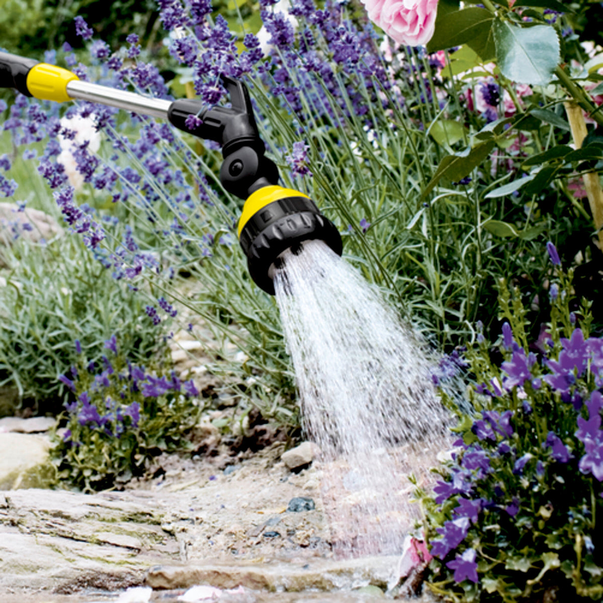 Der ergonomische Kärcher Premium-Gießstab ist ein Meisterwerk an Perfektion und Komfort. Seine vielseitigen Einsatzmöglichkeiten machen ihn zum vielseitigen Allrounder und universellen Multitalent. Der Premium Gießstab ist ideal zur Bewässerung kleiner und mittelgroßer Flächen und Gärten geeignet. Von der Bodenbewässerung bis zur Überkopfarbeit – zum Beispiel bei der Bewässerung von Hängepflanzen – erlaubt der teleskopische Gießstab bequemstes Arbeiten. Die gelungene Kombination aus elegantem Design, erstklassiger Funktionalität und perfekter Ergonomie überzeugt auf ganzer Linie und macht den Premium Gießstab von Kärcher zum idealen Arbeitsgerät auch für länger andauernde Arbeitseinsätze. Kurz: Die ideale Lösung für ein rundum spritziges Gartenvergnügen. Übrigens: Spritzen von Kärcher sind mit allen erhältlichen Klicksystemen kompatibel. Ausstattungsdetails: Beweglicher Sprühkopf (180°), Teleskopstange (70-105 cm), Einstellung der Wasserdurchflussmenge mit einer Hand (inkl. ON/OFF-Funktion), komfortable Aufhängemöglichkeit, 6 Sprühbilder