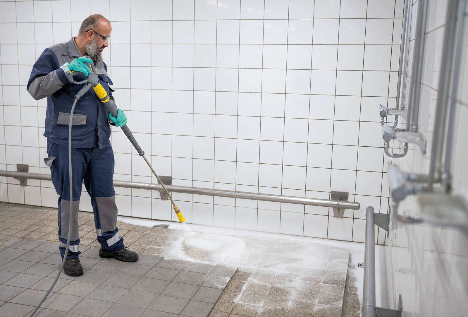 Dank seines breiten Wirkspektrums bietet der saure PressurePro Aktivreiniger RM 25 von Kärcher vielfältige Einsatzmöglichkeiten bei der gründlichen Reinigung mit Hochdruckreinigern. Kraftvoll entfernt das Reinigungsmittel Ablagerungen und Beläge von Kalk, Rost, Bier- und Milchstein sowie Fetten und Eiweißen. Damit eignet es sich sehr gut für die Tankinnenreinigung im Lebensmittelbereich, zur Grundreinigung von Kühlhäusern und -räumen sowie von Sanitärbereichen wie in Schwimmbädern oder öffentlichen Toiletten wie an Raststätten, an Flughäfen oder Bahnhöfen. Auch Milchkammern und Melkstände in der Landwirtschaft reinigt die leistungsstarke Kombination aus reinigungsaktiven Tensiden, Phosphor- und Salzsäure sowie einem wirkungsvollen Korrosionsschutz zum Schutz von Metallen gründlich und sicher. Dazu ist der PressurePro Aktivreiniger RM 25 sehr sparsam dosierbar und senkt so die Materialkosten bei der Reinigung.