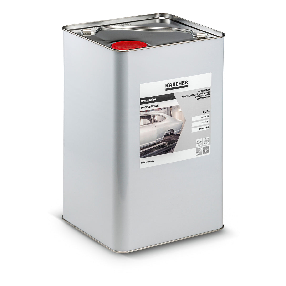 Zur optimalen Vorbereitung von Lackier-, Grundier- und Beschichtungsarbeiten geeigneter PressurePro Entwachser RM 36 von Kärcher. Der Reiniger auf Lösungsmittelbasis entfernt bei geringer Dosierung zuverlässig Wachskonservierungsmittel, Schutzwachsfilme sowie Fette, Öle, Schmierstoffe, Harz, mineralische Verschmutzungen und Klebstoffe. Frei von Halogenkohlenwasserstoffen, leicht abzuspülen und perfekt mit Hochdruckreinigern anzuwenden, ist der PressurePro Entwachser RM 36 ideal zum Einsatz in Industrie, Gewerbe und Handwerk geeignet.