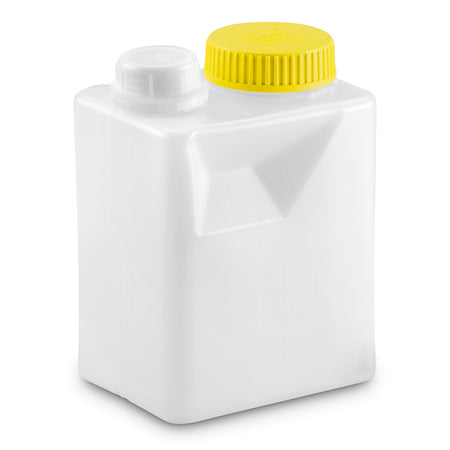 Dieser Reinigungsmittelkanister mit 2,5 Liter Volumen ist nur für passende Scheuersaugmaschinen mit Reinigungsmittel-Dosiersystem DOSE geeignet. Er verfügt über eine große Einfüllöffnung, die das Nachfüllen von Reinigungsmitteln sehr erleichtert. Dank des integrierten Schnellkupplungssystems verbleibt beim Wechsel des Kanisters der Ansaugschlauch für das Reinigungsmittel im Kanister, lediglich die Kupplung muss entfernt werden. So ermöglicht das System, den direkten Kontakt des Anwenders mit dem Reinigungsmittel bei Kanisterwechseln zu vermeiden.