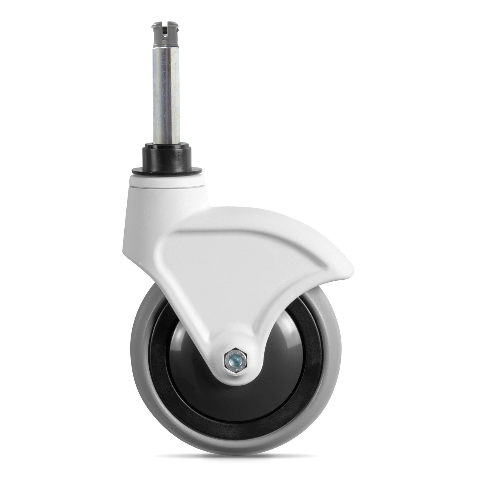 Gummirad mit Stoßschutz und 125 mm Durchmesser. Maße: 24,5 × 13,5 × 7,5 cm.