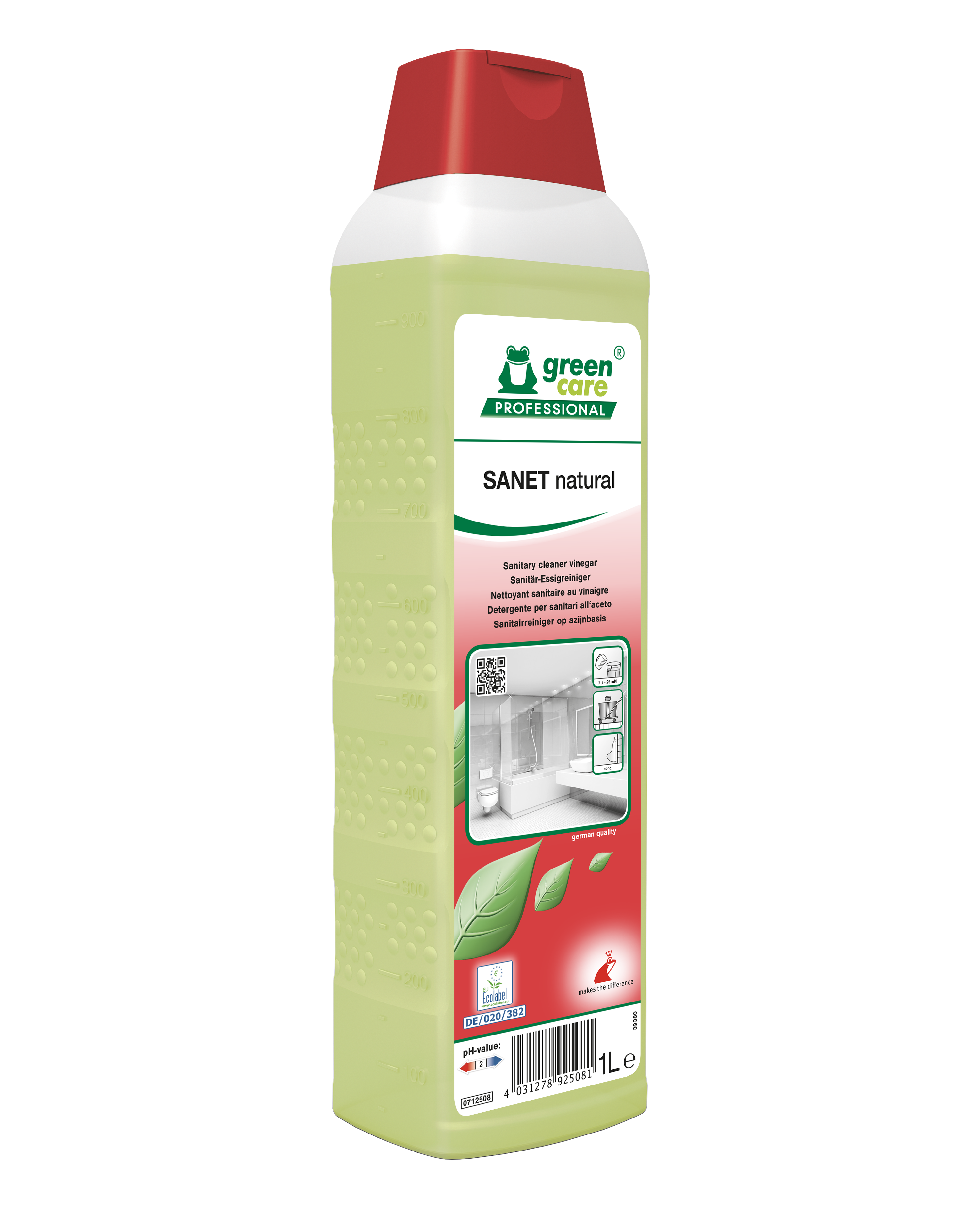 - Unter Gewährleistung der Sicherheit des Anwenders bietet SANET natural eine gute Reinigungswirkung bei niedriger Dosierung und entfernt gewöhnliche Verschmutzungen, Kalk, Seifenreste und Rost.