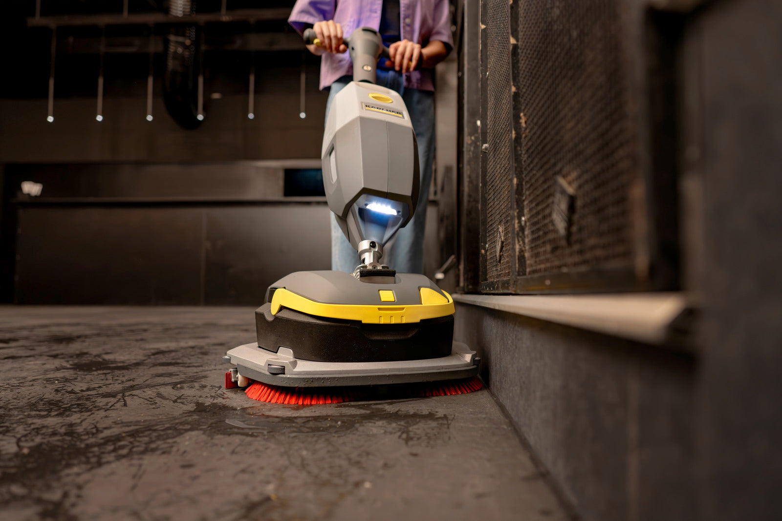- Einfachstes HandlingAngenehmer Vortrieb über gegenläufige Bürsten.Randnahes Reinigen durch Abweisrollen ohne Beschädigung des Inventars.360°-Reinigen durch Neigung der Deichsel in alle Richtungen.
