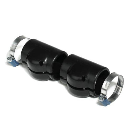 Mehrteiliges Montageset für Schlauchanschlüsse in Nennweite DN 70. Das Set besteht aus jeweils 2 schwarzen Schlauchmanschetten sowie den zugehörigen Rohrschellen.