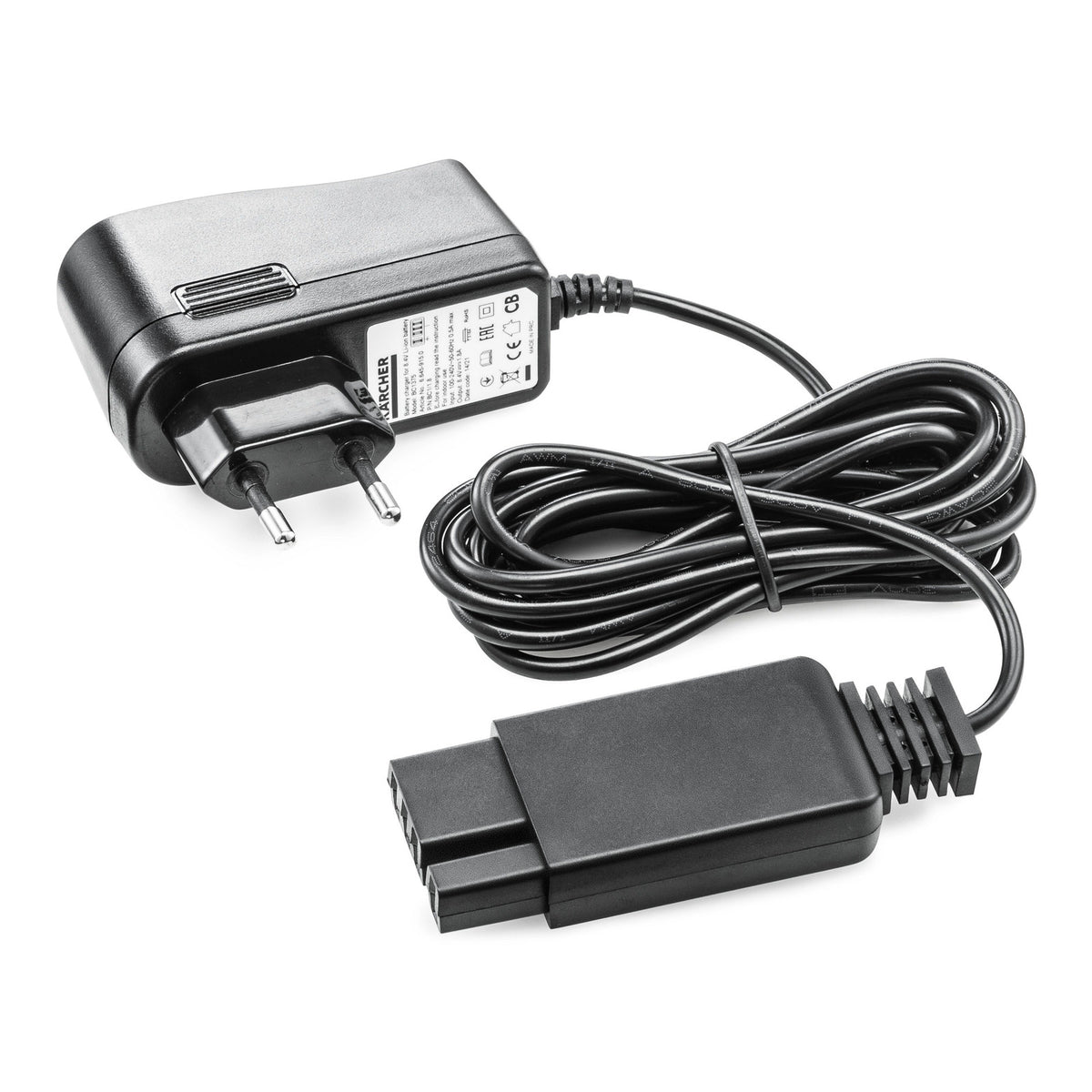 Schnellladegerät BC 1/1.8 zum Einsatz mit dem Elektrobesen EB 30/1 von Kärcher. Lädt den Lithium-Ionen-Akku des Geräts in 90 Minuten komplett auf.
