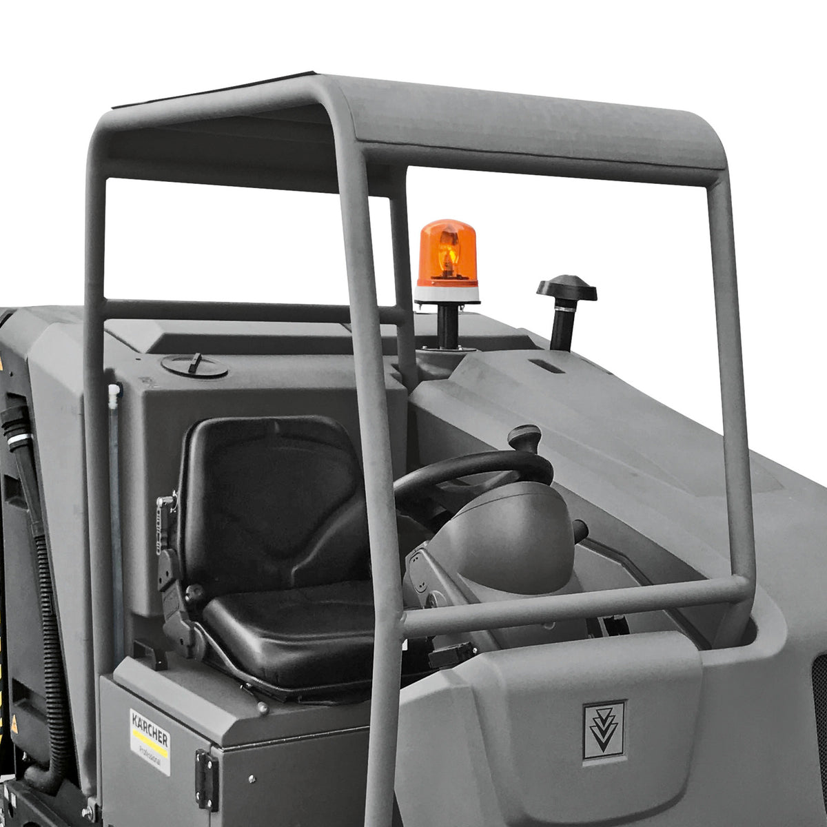 Hochwertiges, oben komplett geschlossenes Schutzdach zur Erweiterung unserer Aufsitz-Scheuersaugmaschine B 300 RI. Schützt zuverlässig vor möglichen Gefahren. Gesamthöhe mit Dach: 2,14 m.