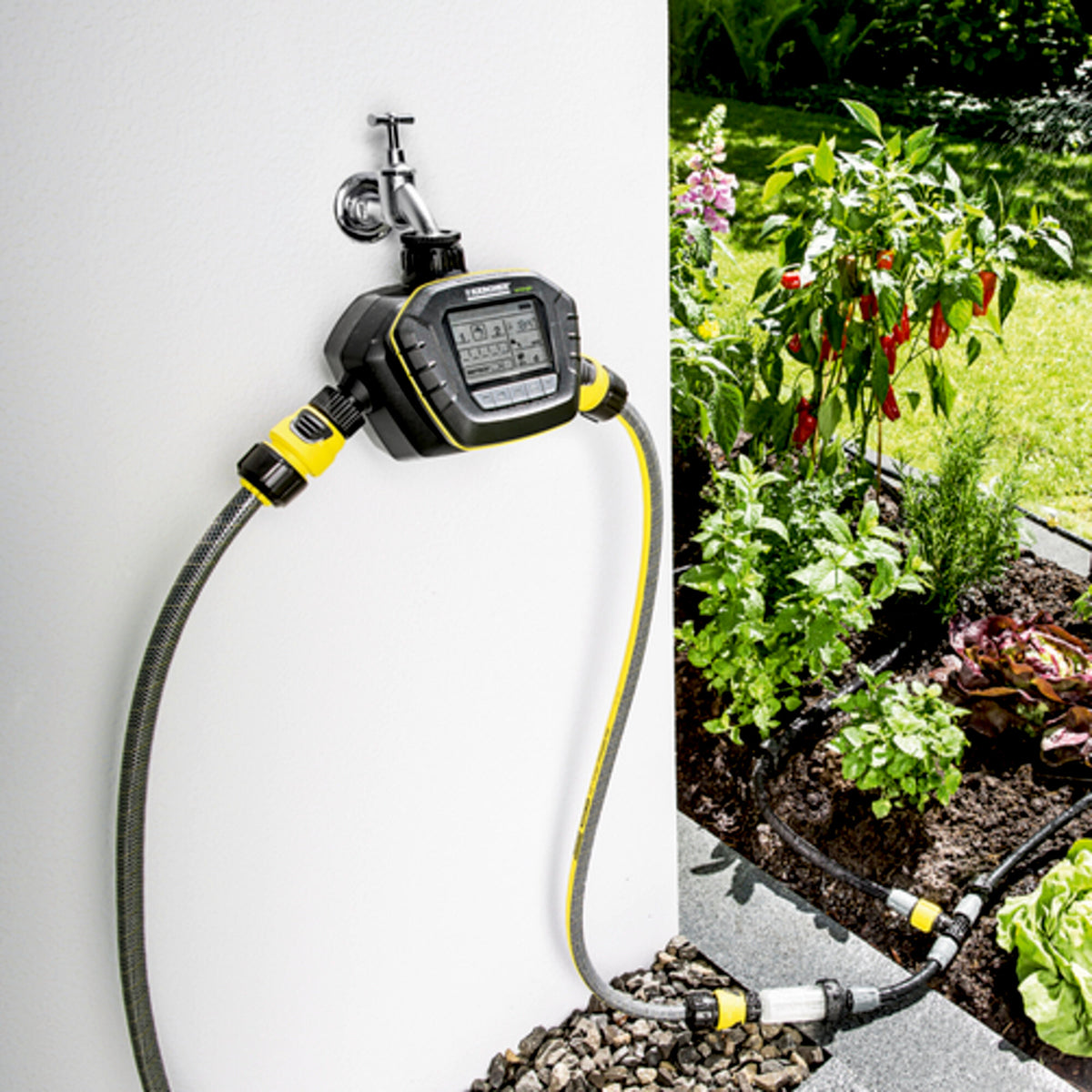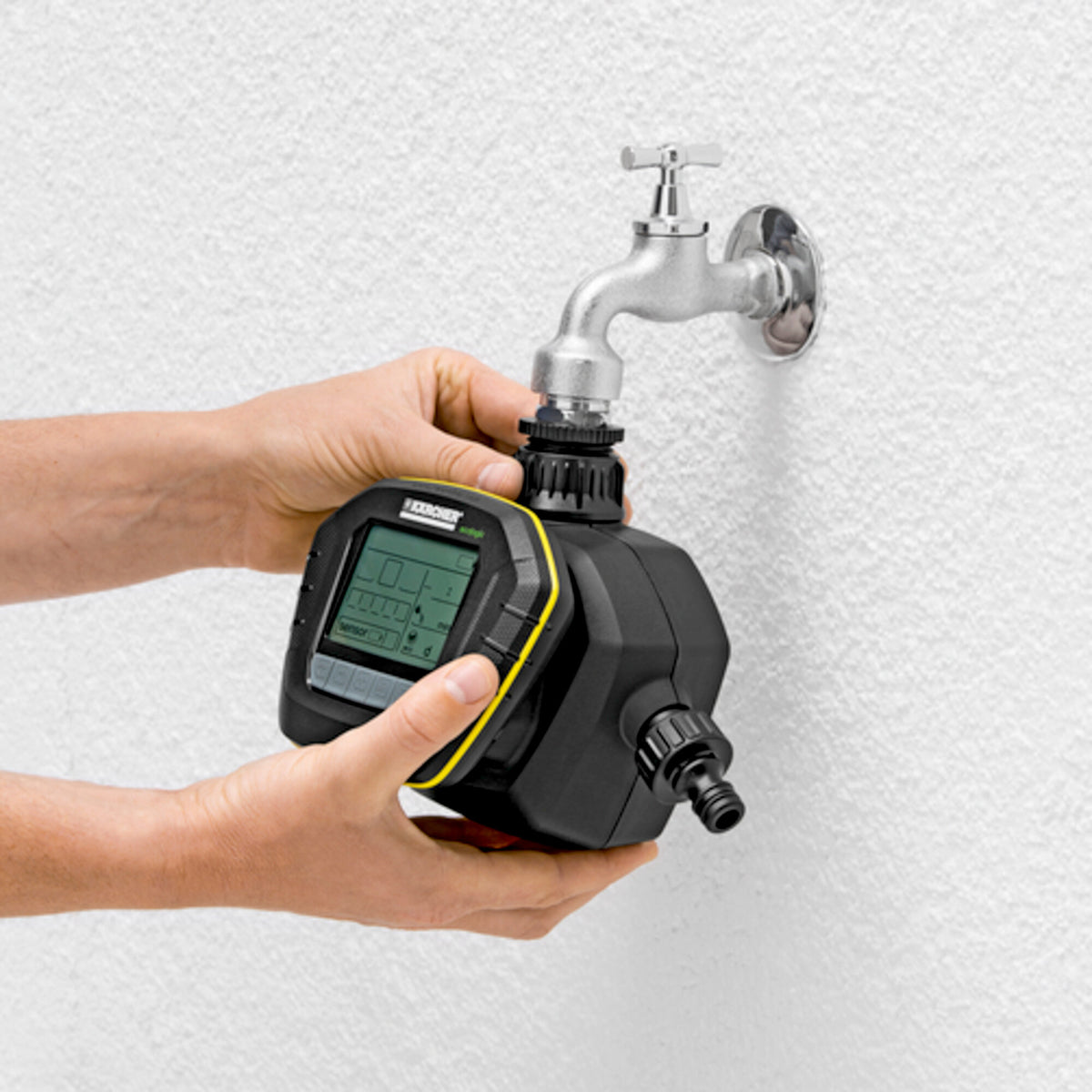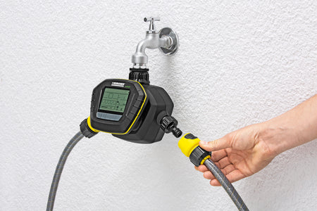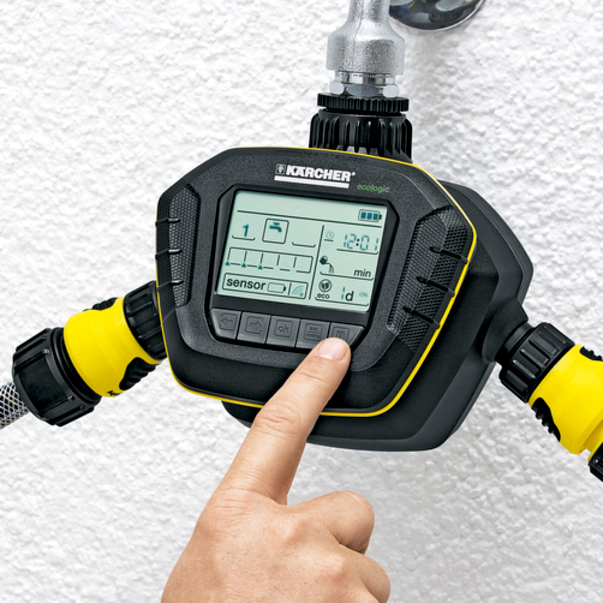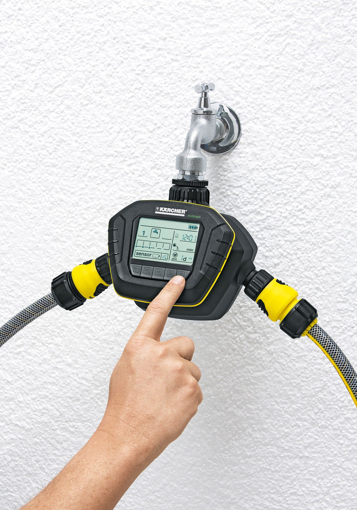 Der eco!ogic SensoTimer ST 6 Duo mit zwei unabhängigen Wasserauslässen bewässert je nach Feuchtigkeitsgehalt und Bedarf. Seine zwei mitgelieferten Sensoren - einer für jeden Ausgang - messen den Feuchtigkeitsgehalt des Bodens und übermitteln diesen per Funk an den SensoTimer. Die Feuchtigkeitswerte können in 5 Stufen eingestellt werden. Wenn der gewählte Wert nicht mehr erreicht wird, startet die Bewässerung automatisch zur nächsten eingestellten Zeit. Das abnehmbare Steuermodul und die 5 Bedientasten machen die Programmierung zu einem Kinderspiel. Es können bis zu zwei Bewässerungsstunden programmiert werden (max. Bewässerungsdauer: 90 Min.). Die eco!ogic-Funktion ermöglicht zudem eine Bewässerungszeit von einem bis sieben Tagen. Eine manuelle Bewässerung ist jederzeit möglich. Per Knopfdruck können Sie die programmierte Bewässerung für vierundzwanzig Stunden unterbrechen. Der SensoTimer ST 6 Duo eco!ogic bewässert bedarfsgerecht und ist mit allen bekannten clic-Systemen kompatibel. Im Gegensatz zu den drei benötigten 9-Volt-Batterien (eine für das Steuermodul, eine für jeden Sensor) sind die Wasserhahnnase und der Vorfilter im Lieferumfang enthalten.
