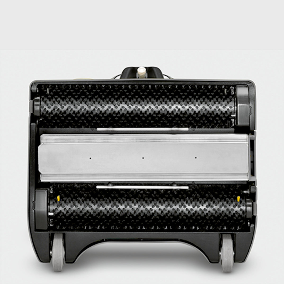 - 2 gegenläufige WalzenHohe Reinigungsleistung durch hohen Anpressdruck.Reinigt die Fasern gleichzeitig von 2 Seiten und stellt diese auf.Sorgt für einen gleichmäßigen Bodenkontakt auch bei Unebenheiten.