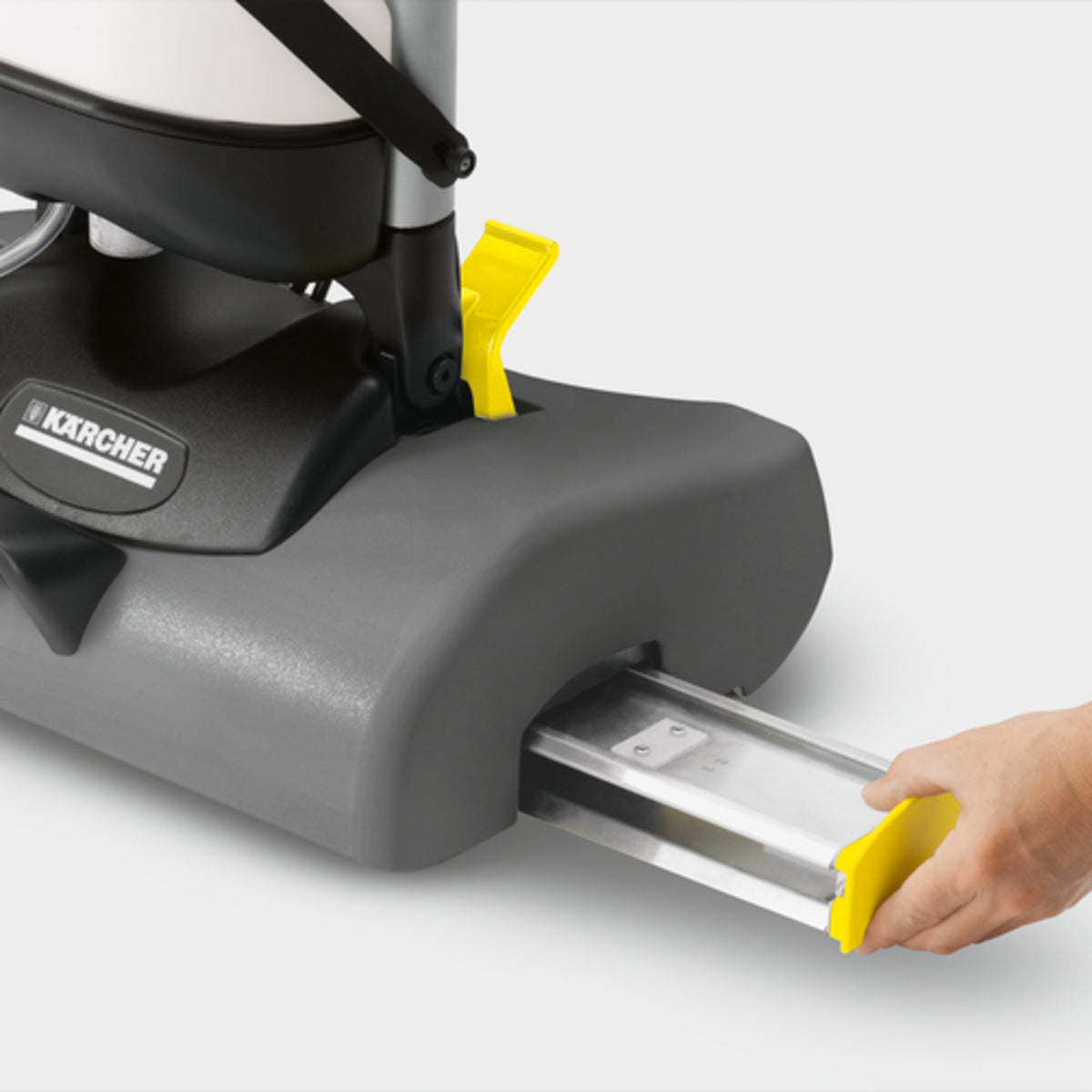 Die BRS 43/500 C ist die ideale Maschine für die produktive Teppichzwischenreinigung. Sie entfernt den Schmutz zuverlässig und frischt den Teppich auf. In einem Schmutzfangbehälter werden lose Flusen und Schmutzpartikel gleich bei der Reinigung aufgenommen. Der Teppich ist bereits nach 20 Minuten wieder trocken und begehbar. Durch die kompakte Bauart des Geräts ist auch die Anwendung bei Publikumsverkehr möglich. Mit einer Flächenleistung bis zu 600 m² eignet sich die BRS 43/500 C auch zur Auffrischung größerer Flächen.