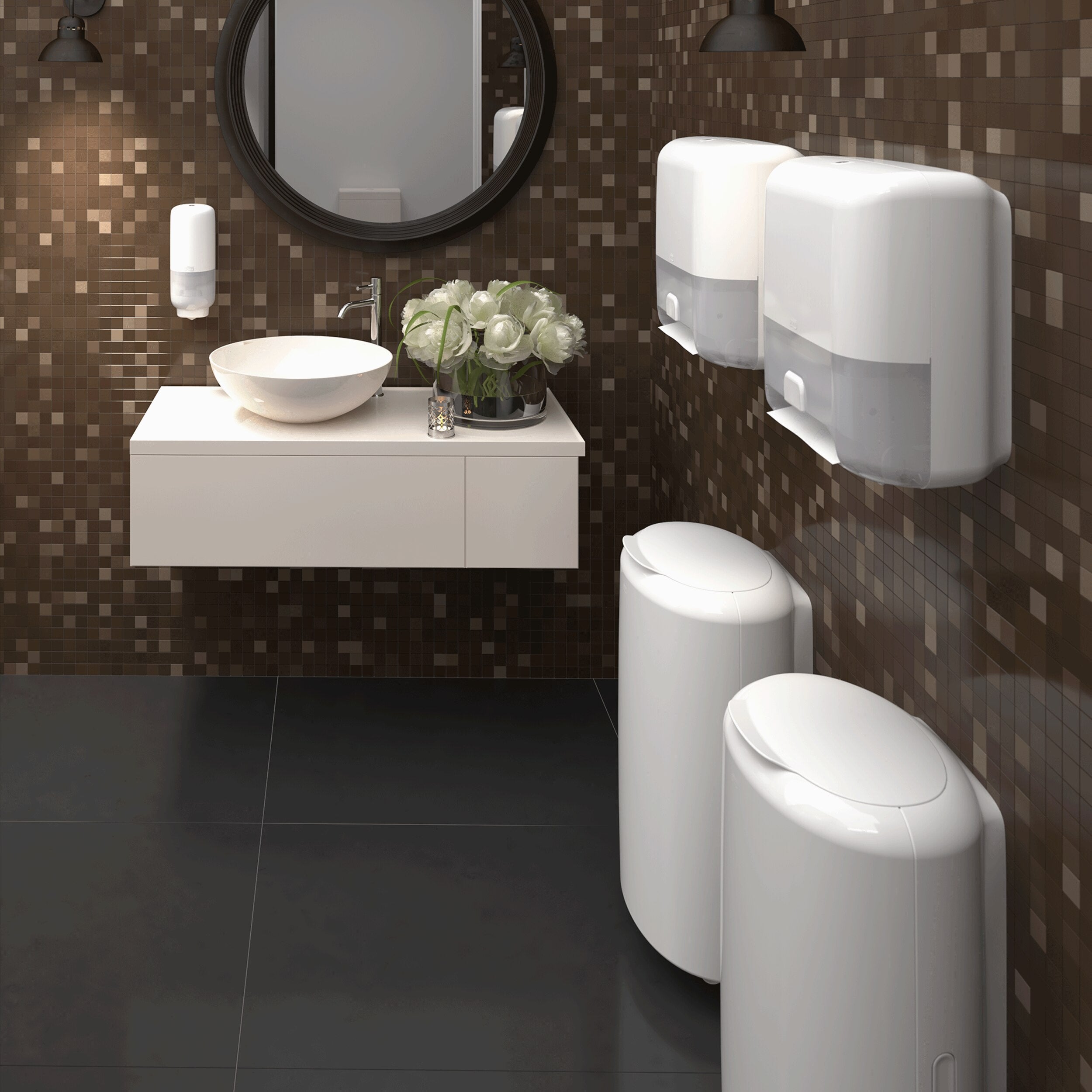 Sorgen Sie mit unserem Tork 50-Liter-Mülleimer für mehr Platz in Waschräumen. Er bietet vielseitige Montageoptionen für Wand oder Boden und ist dadurch für jede Umgebung ideal geeignet. Der verdeckte Müllbeutel sorgt zudem für ein sauberes Erscheinungsbild. Das moderne, funktionale Design unseres Mülleimers aus der Elevation Linie hinterlässt einen positiven Eindruck. Kombinieren Sie den Abfallbehälter mit unserem Soft-Close-Deckel, um die Hygiene und Sicherheit zu erhöhen.