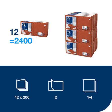 In Bars und Cafés ist der erste Eindruck entscheidend. Sorgen Sie mit unseren hochwertigen Tork Cocktailservietten dafür, dass Ihre Gäste ihren Snack oder ihr Getränk genießen. Das 2-lagige Design ist robust und reicht für die gesamte Aufenthaltsdauer eines Gastes. Entsorgen Sie diese Einwegservietten nach jedem Kunden, um Ihren Hygienestandard aufrechtzuerhalten. Mit unserer Auswahl an klassischen und modernen Farben für die Servietten stellen Sie sicher, dass Ihre Tische immer stilvoll aussehen.