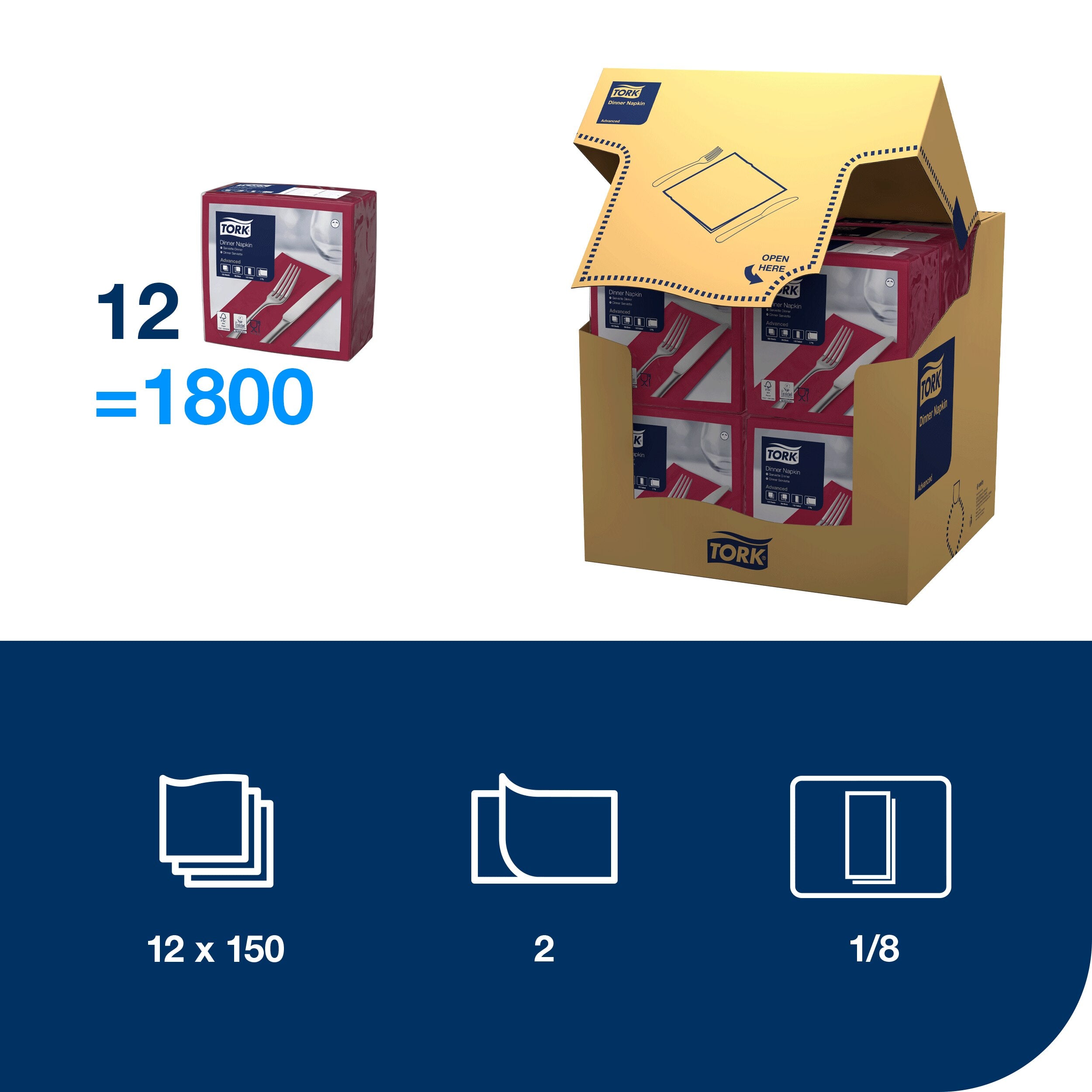 Bringen Sie eine elegante Note in Ihr Restaurant und punkten Sie bei Ihren Gästen mit diesen praktischen Tork Dinnerservietten. Da sie größer sind als Standard-Papierservietten, bieten sie mehr Komfort beim Essen. Auch Ihr Personal wird sich freuen, denn mit diesen vorgefalteten Servietten sparen sie Zeit für das Eindecken der Tische. Nach Gebrauch lassen sich die Einwegservietten einfach entsorgen – so sparen Sie auch Wäschereikosten. Die Servietten sind in modernen und klassischen Farbtönen erhältlich, sodass sie sich problemlos dem Ambiente anpassen.