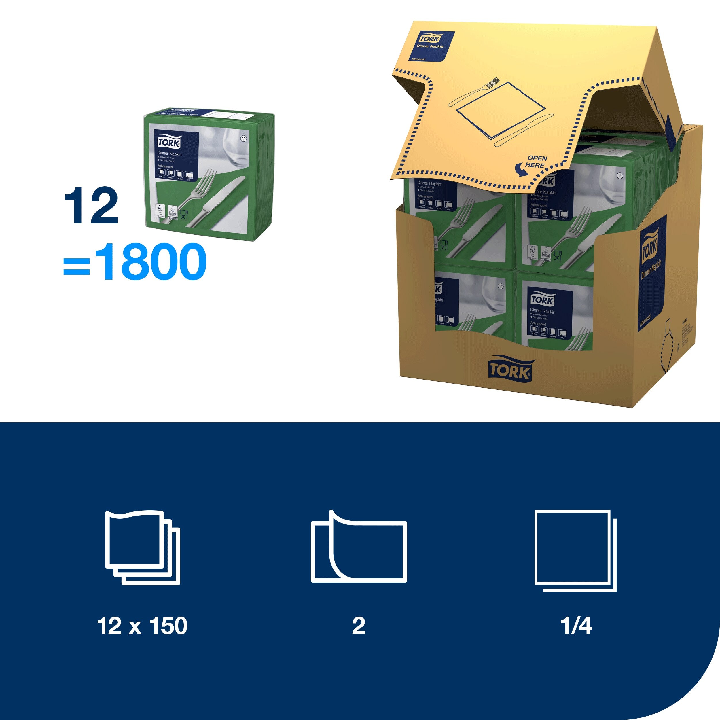 Beeindrucken Sie Ihre Gäste in ungezwungener Atmosphäre mit unseren hochwertigen Tork Dinnerservietten. Sie wurden für Restaurants entwickelt, die Eleganz und Zweckmäßigkeit gleichermaßen zur Geltung bringen, und bieten mehr Komfort beim Essen. Auch Ihr Personal profitiert von diesen Einwegservietten, da das zeit- und kostenintensive Waschen entfällt. Nach Gebrauch können sie einfach entsorgt werden – so verbessert sich auch die Hygiene. Servietten von Tork sind passend zu Ihrer Einrichtung in einer Vielzahl von klassischen und modernen Farben erhältlich.