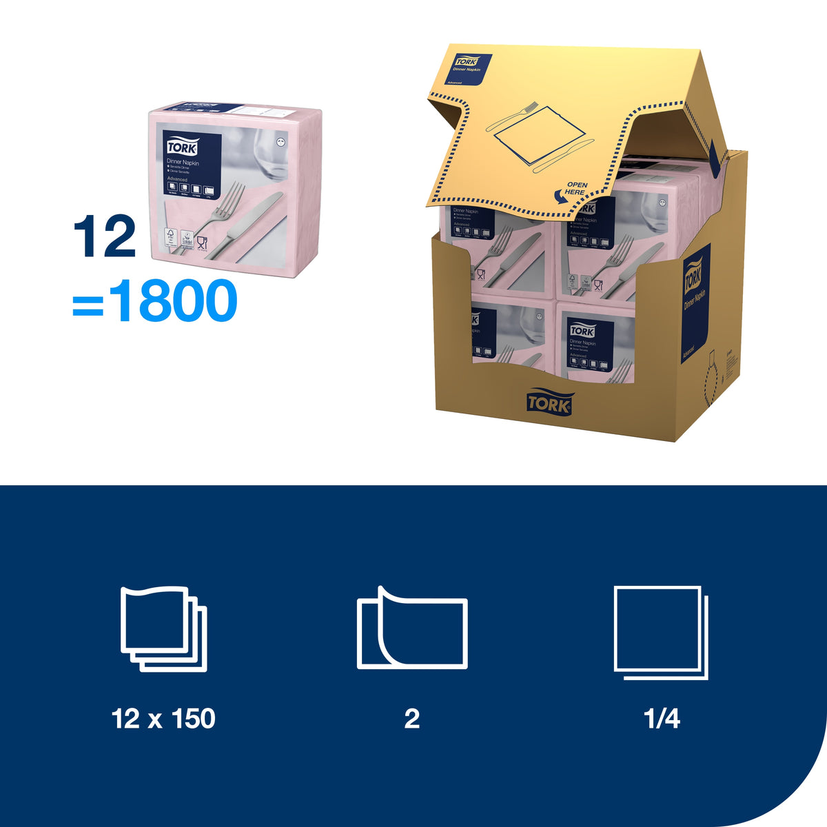 Beeindrucken Sie Ihre Gäste in ungezwungener Atmosphäre mit unseren hochwertigen Tork Dinnerservietten. Sie wurden für Restaurants entwickelt, die Eleganz und Zweckmäßigkeit gleichermaßen zur Geltung bringen, und bieten mehr Komfort beim Essen. Auch Ihr Personal profitiert von diesen Einwegservietten, da das zeit- und kostenintensive Waschen entfällt. Nach Gebrauch können sie einfach entsorgt werden – so verbessert sich auch die Hygiene. Servietten von Tork sind passend zu Ihrer Einrichtung in einer Vielzahl von klassischen und modernen Farben erhältlich.