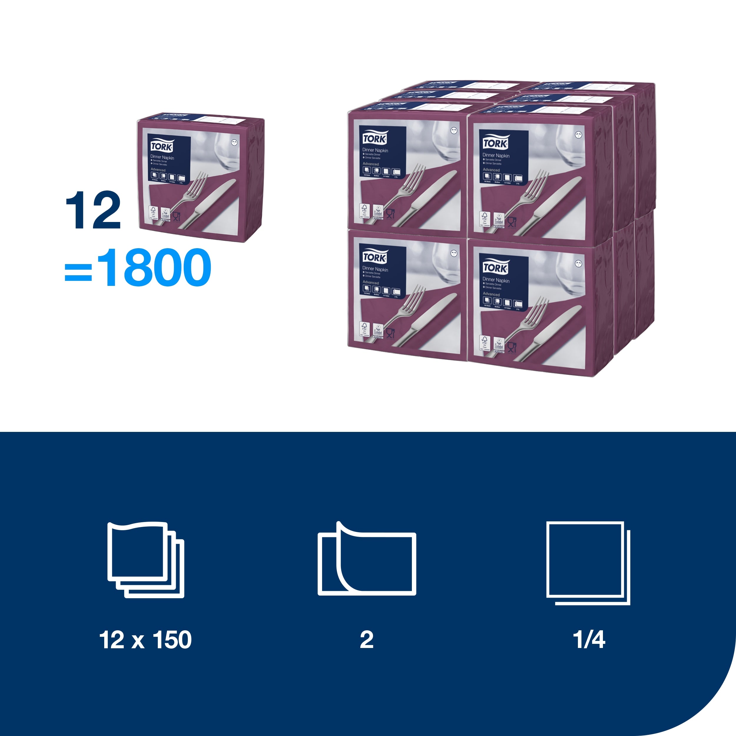 Beeindrucken Sie Ihre Gäste in ungezwungener Atmosphäre mit unseren hochwertigen Tork Dinnerservietten. Sie wurden für Restaurants entwickelt, die Eleganz und Zweckmäßigkeit gleichermaßen zur Geltung bringen, und bieten mehr Komfort beim Essen. Auch Ihr Personal profitiert von diesen Einwegservietten, da das zeit- und kostenintensive Waschen entfällt. Nach Gebrauch können sie einfach entsorgt werden – so verbessert sich auch die Hygiene. Servietten von Tork sind passend zu Ihrer Einrichtung in einer Vielzahl von klassischen und modernen Farben erhältlich.