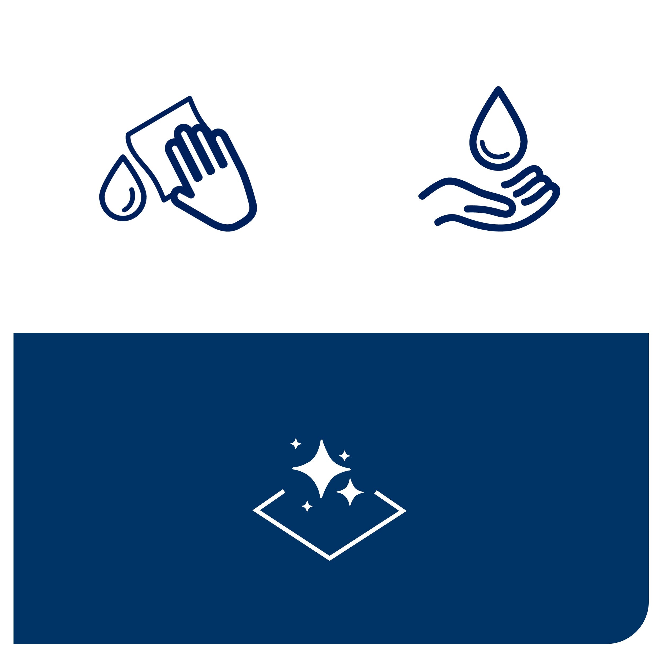 * EN14476: viruzide Wirkung (begrenzt viruzid, d. h. gegen alle behüllten Viren wie Influenza, Corona, HIV, Herpes, Hepatitis); Einwirkungszeit: 30 Sekunden unter sauberen Bedingungen