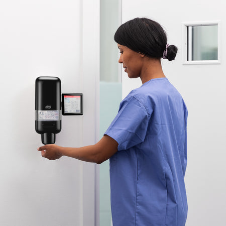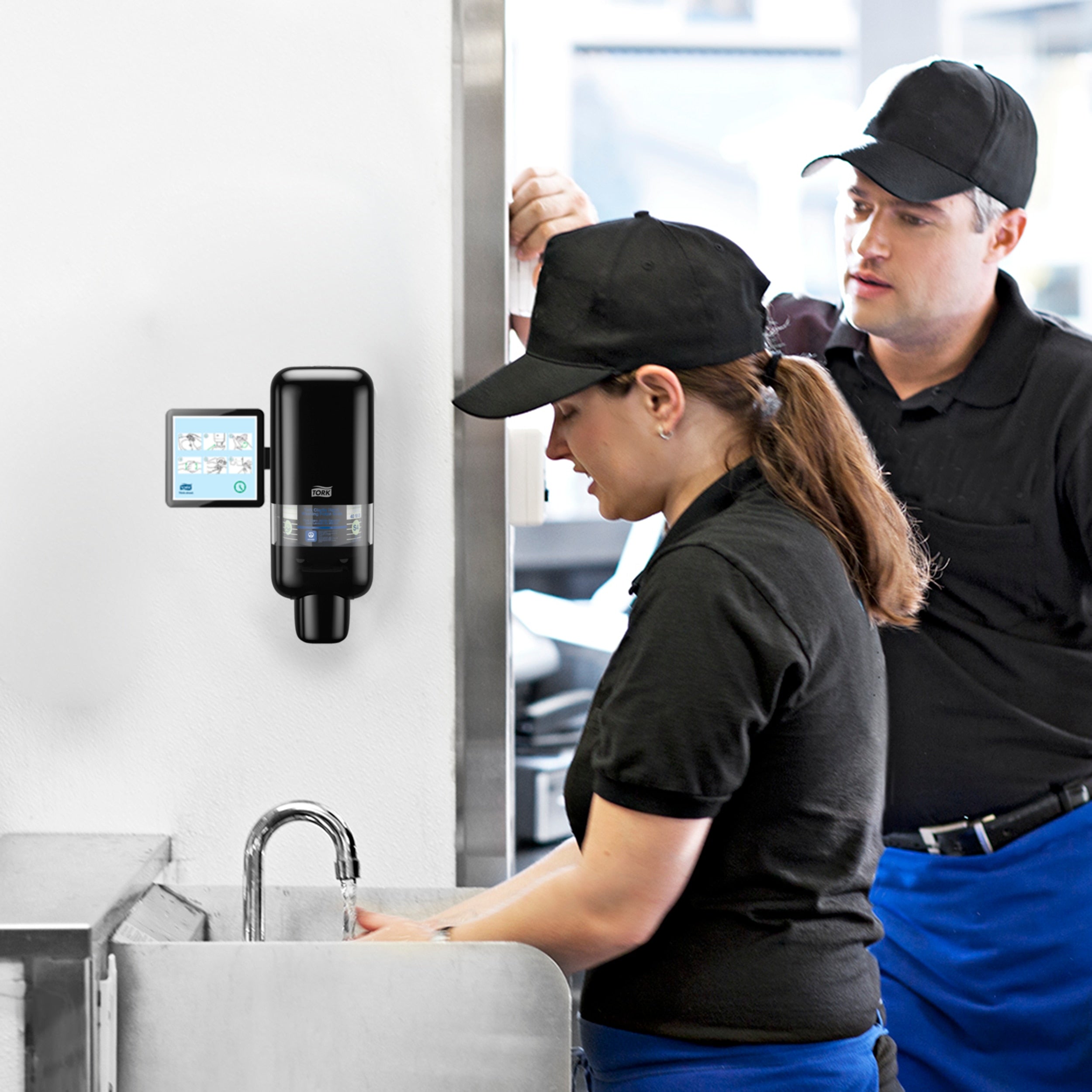 Fördern Sie eine gute Händehygiene, indem Sie diesen Tork Infohalter nutzen. Erinnern Sie Gäste oder Mitarbeiter daran, warum Händehygiene so wichtig ist und wie richtiges Händewaschen funktioniert, oder informieren Sie sie, ob sich gerade Handseife, Handlotion oder ein Händedesinfektionsmittel im Spender befindet. Die Halterung ist in Schwarz oder Weiß erhältlich und passt perfekt zu Ihrem Tork Spender.