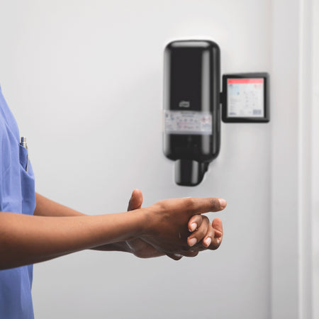 Tork Infohalter für Seifen und Händedesinfektionsmittel Spender Schwarz
