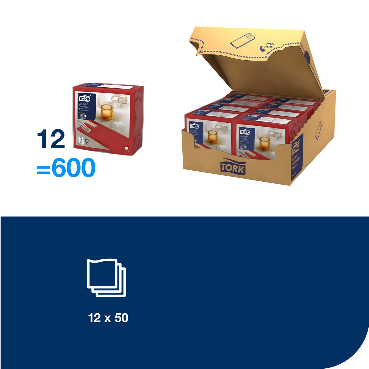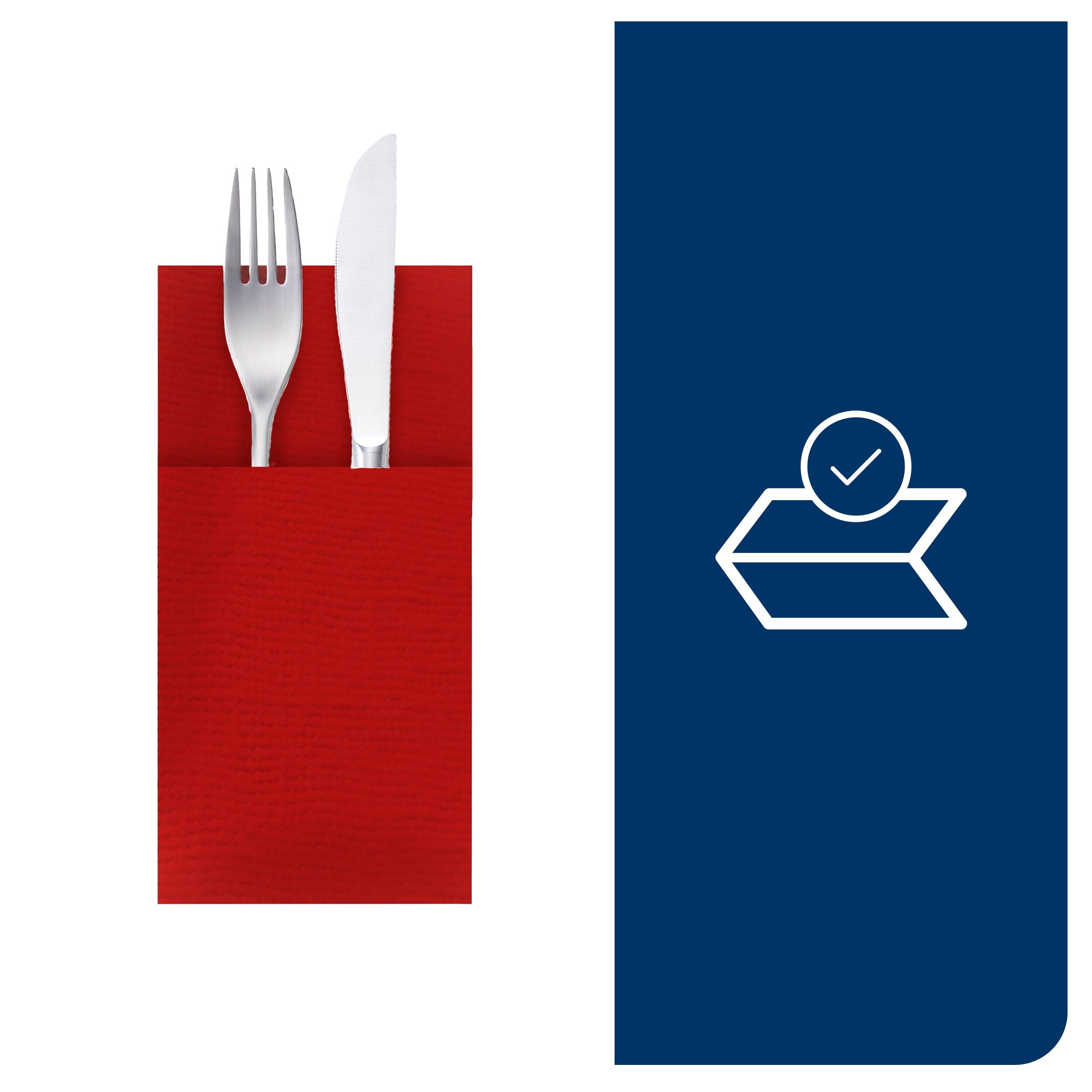 + Vorgefaltet als Bestecktaschen, um Zeit zu sparen und die Hygiene zu verbessern