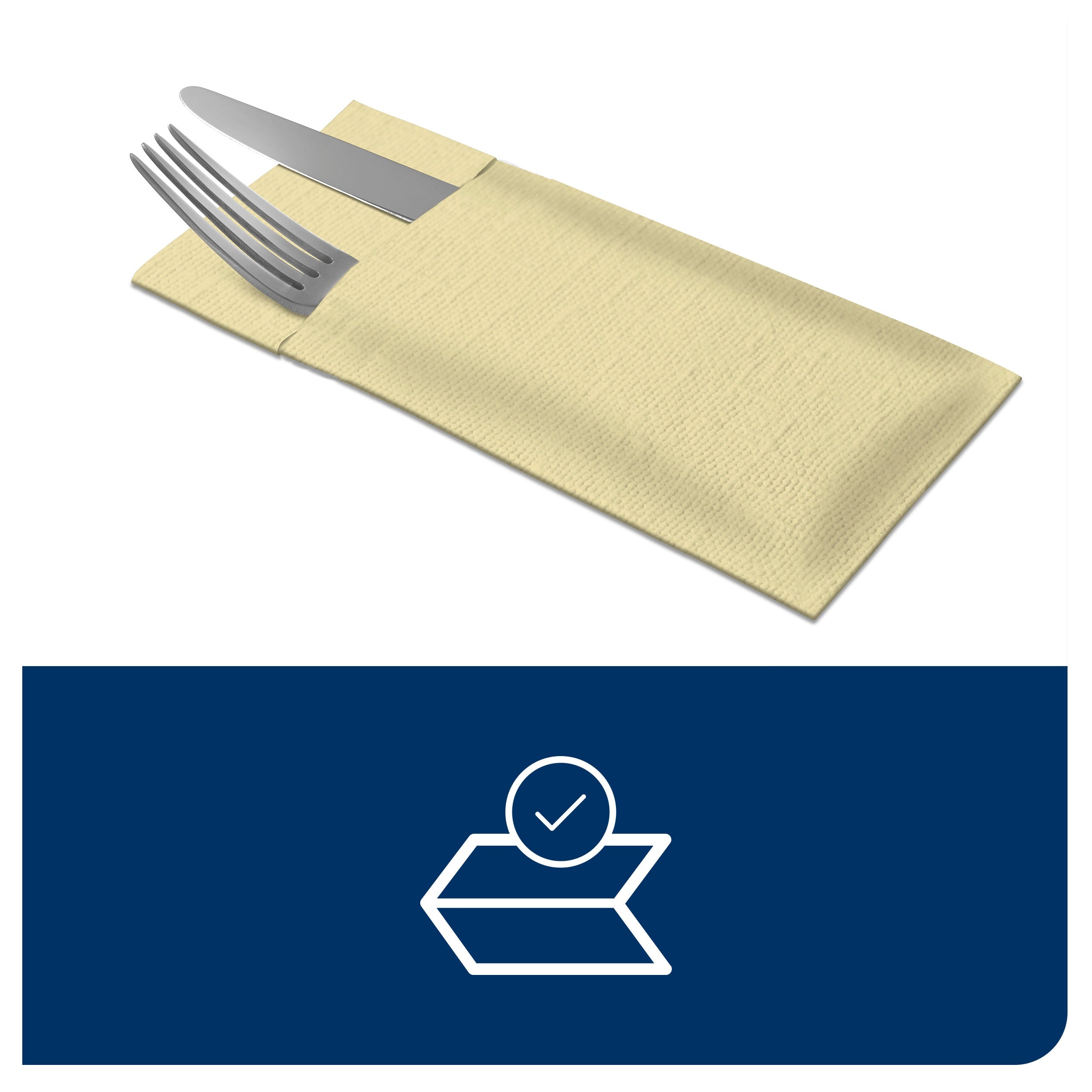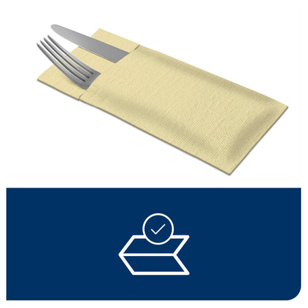 + Vorgefaltet als Bestecktaschen, um Zeit zu sparen und die Hygiene zu verbessern