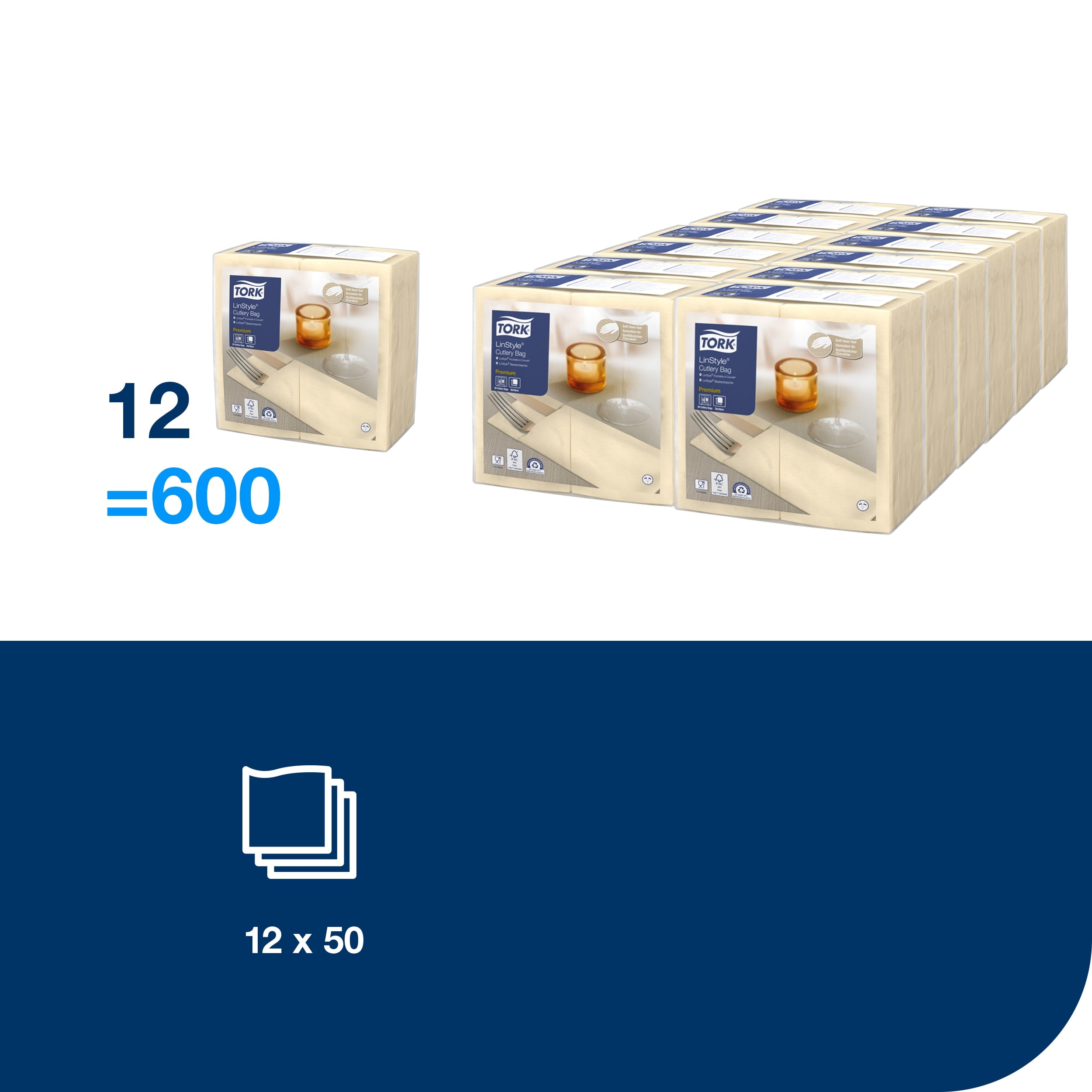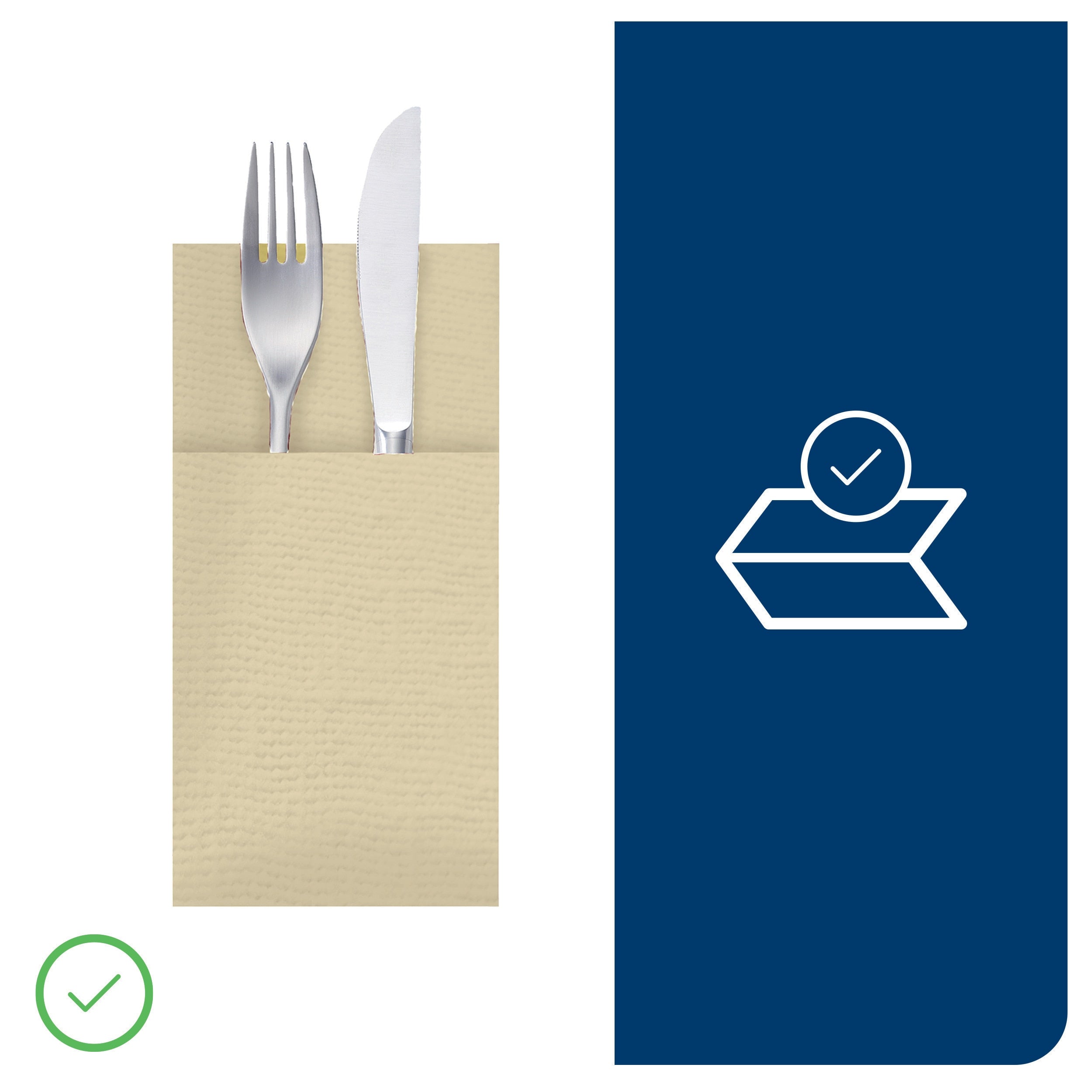+ Vorgefaltet als Bestecktaschen, um Zeit zu sparen und die Hygiene zu verbessern