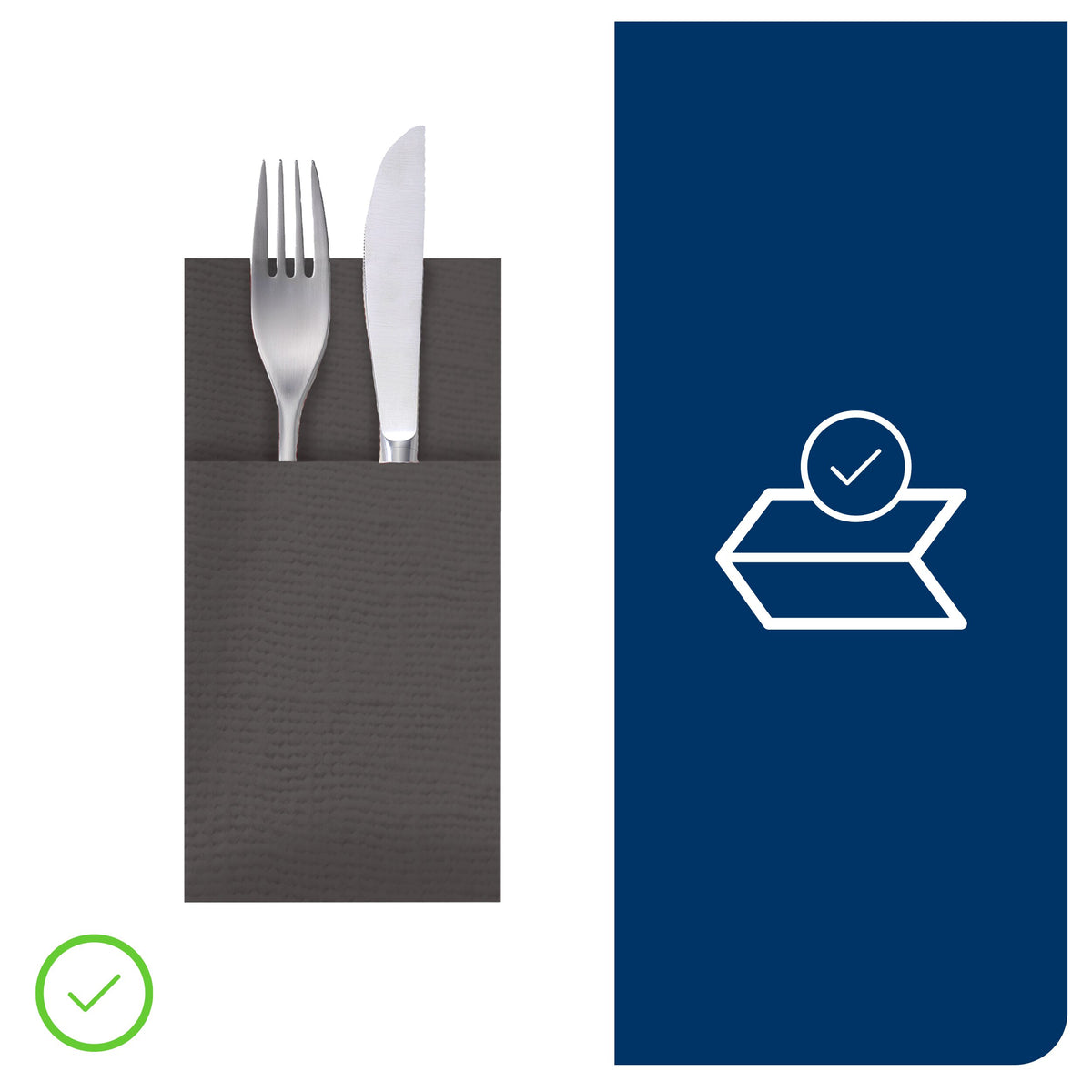 + Vorgefaltet als Bestecktaschen, um Zeit zu sparen und die Hygiene zu verbessern