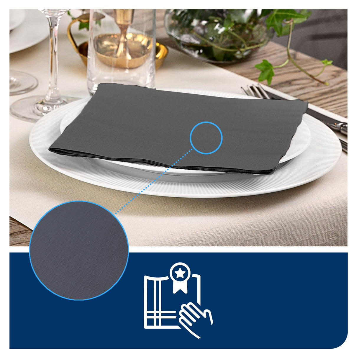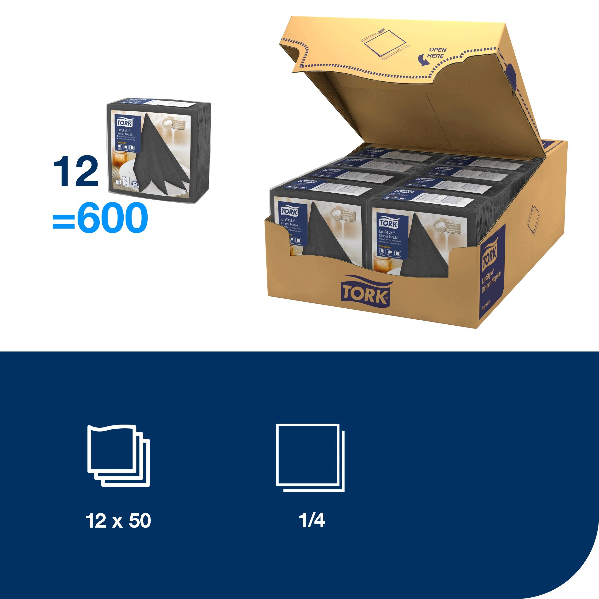 Hinterlassen Sie bei Ihren Gästen einen optimalen ersten Eindruck mithilfe unserer hochwertigen Tork LinStyle® Dinnerservietten. Sie sind weicher und voluminöser als herkömmliche Papierservietten und sorgen mit ihrer leinenartigen Haptik für elegant eingedeckte Tische. Die Servietten sind äußerst strapazierfähig und können von der Vorspeise bis zum Dessert eingesetzt werden, was Kosten und Verbrauch senkt. Die enorm saugfähigen Einwegservietten nehmen verschüttete Flüssigkeiten schnell auf. Der Aufwand für das Waschen echter Stoffservietten entfällt.