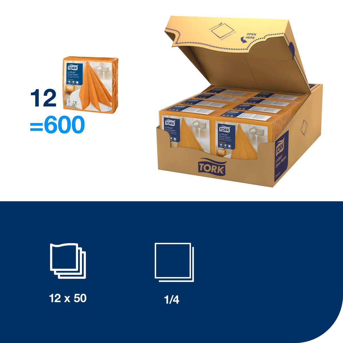 Sorgen Sie bei Ihren Gästen für einen guten ersten Eindruck, indem Sie diese hochwertigen Tork LinStyle® Dinnerservietten verwenden. Die Premium-Servietten sorgen für ein gehobenes Ambiente in Ihrem Restaurant, da sie wie hochwertiges Leinen aussehen und sich auch so anfühlen. Sie sind außerdem weicher und voluminöser als herkömmliche Papierservietten – das werden Ihre Gäste gleich bemerken. Verschüttete Flüssigkeiten können dank ihrer hohen Saugfähigkeit rasch beseitigt werden, sodass Ihr Personal Zeit und Mühe spart.