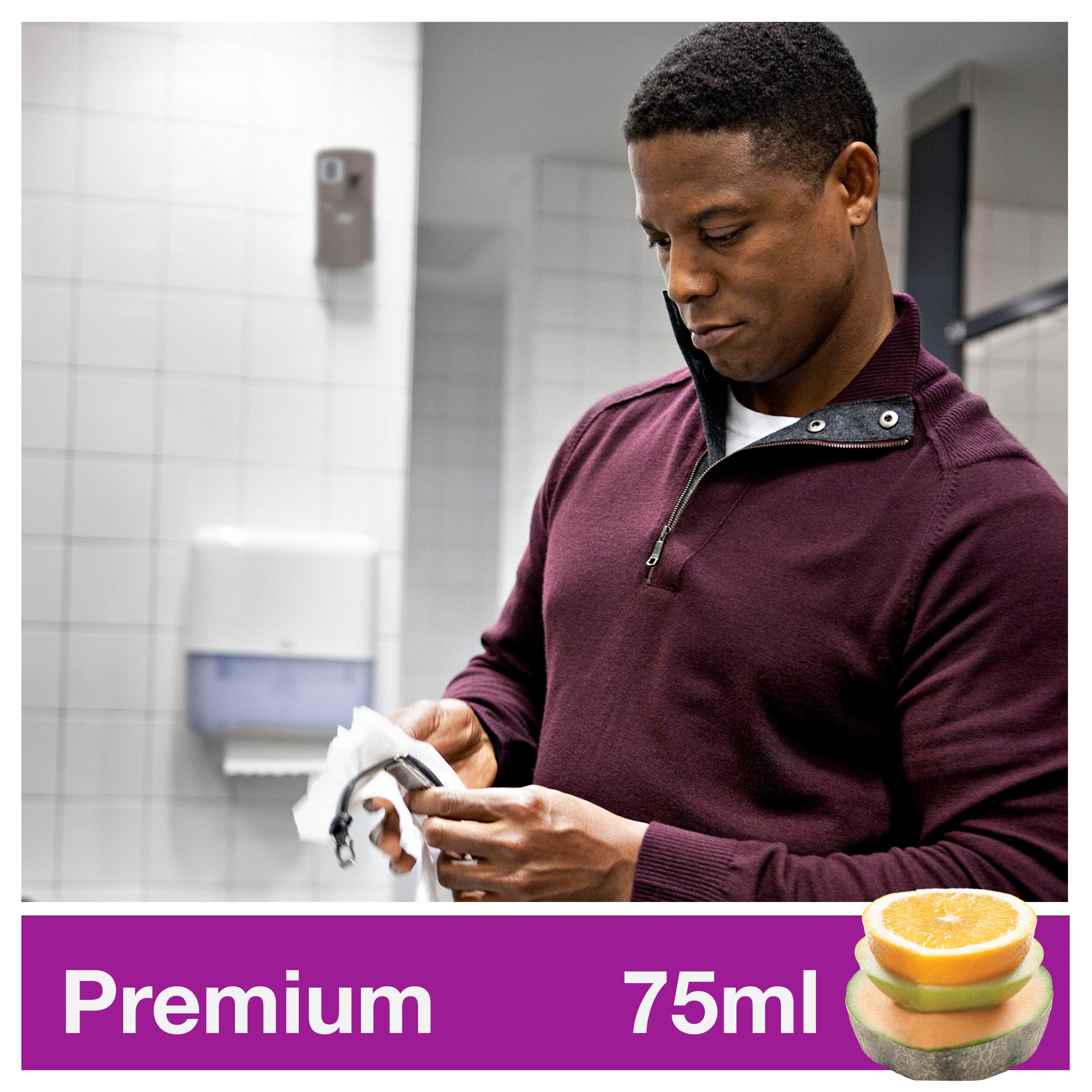 Beseitigen Sie Gerüche in allen Waschräumen effizient dank des Tork Lufterfrischersprays mit patentiertem Geruchsneutralisierer. Der fruchtige Duft, der von einem führenden europäischen Parfümhersteller kreiert wurde, hinterlässt einen erstklassigen Eindruck bei Ihren Gästen. Die konzentrierten Duftöle sorgen dabei für einen lang anhaltenden frischen Raumduft. Verwenden Sie dieses Raumspray in Kombination mit unserem Tork Lufterfrischerspender – dieser wartungsarme Spender ist individuell einstellbar und leicht zu programmieren.